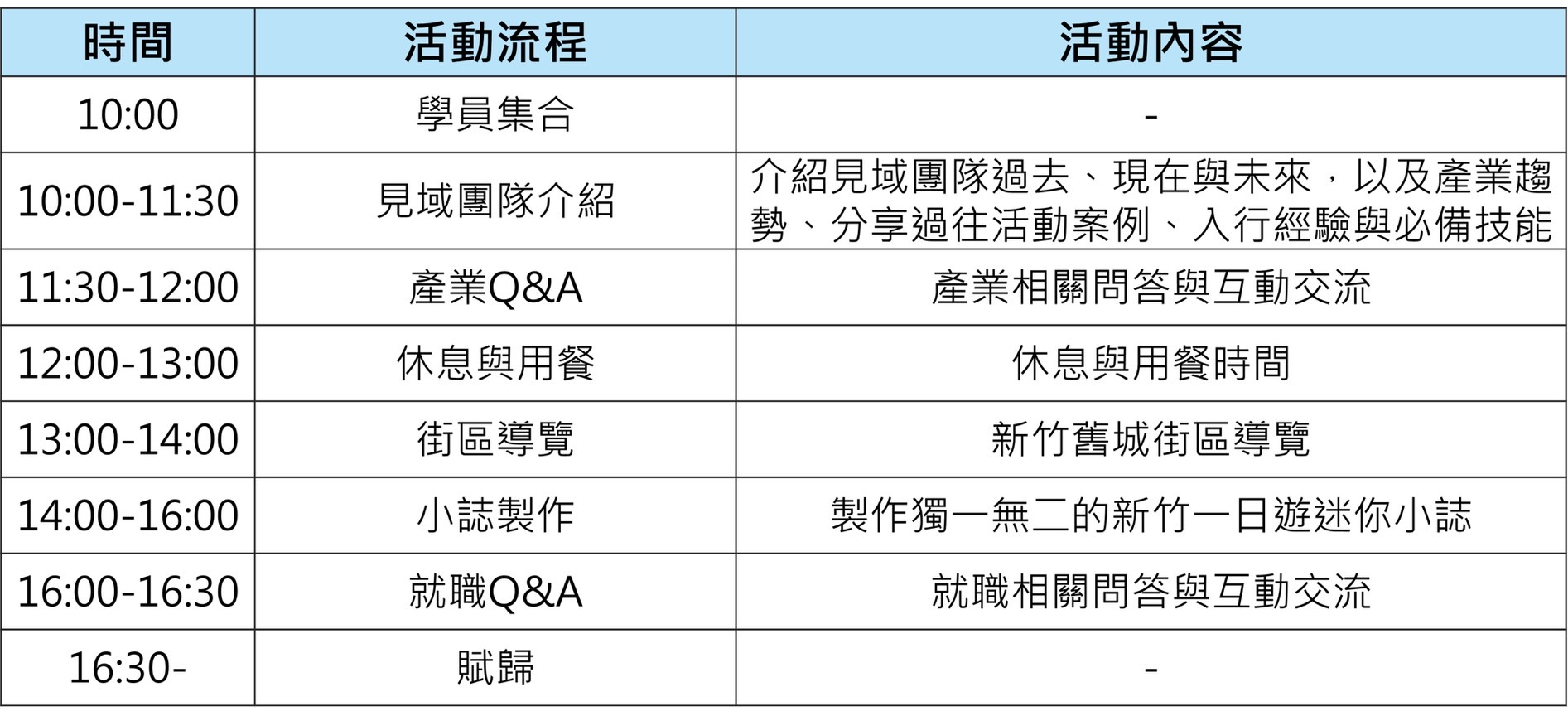- 活動皆全程免費,並提供餐食、保險及接駁。