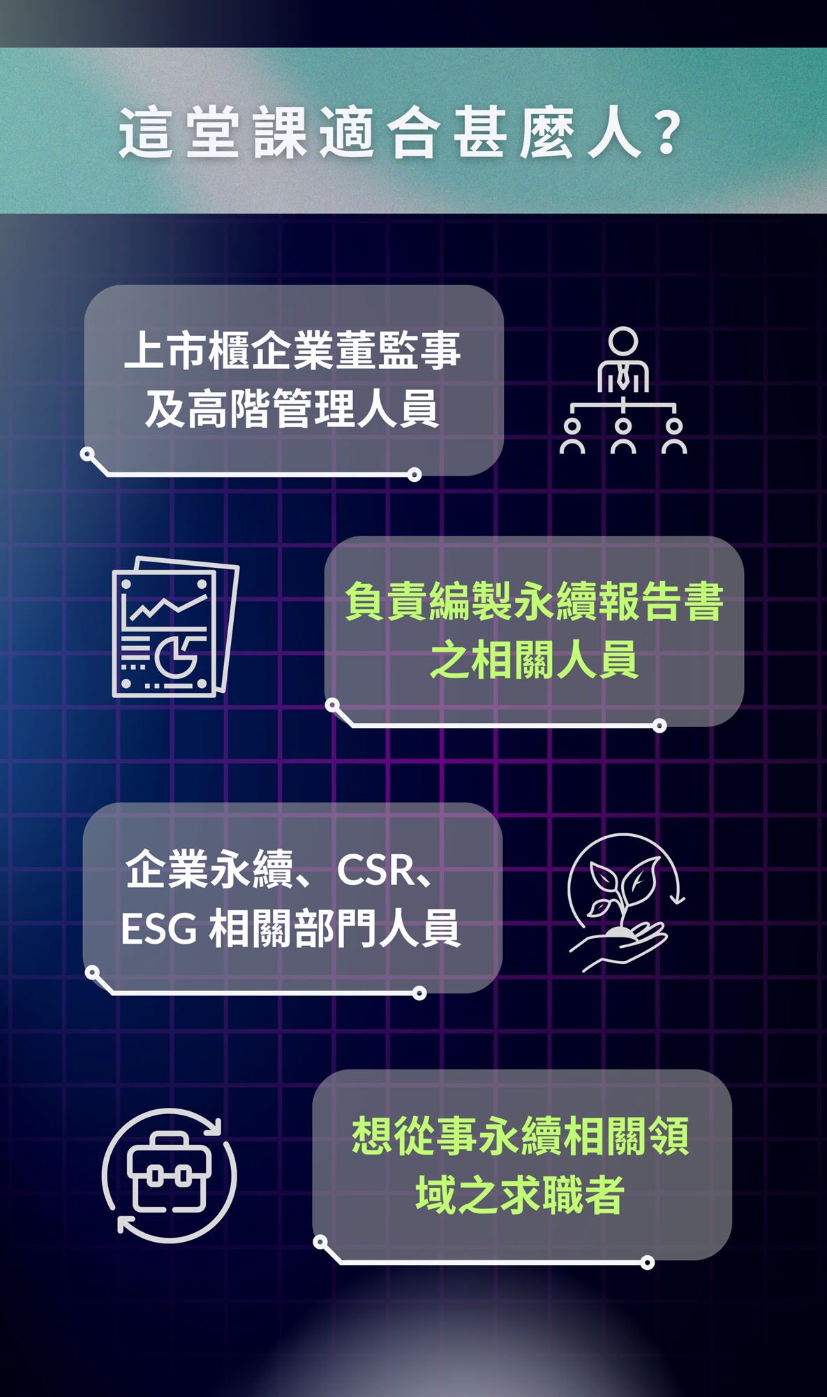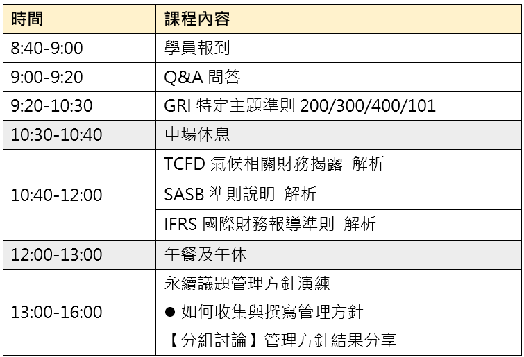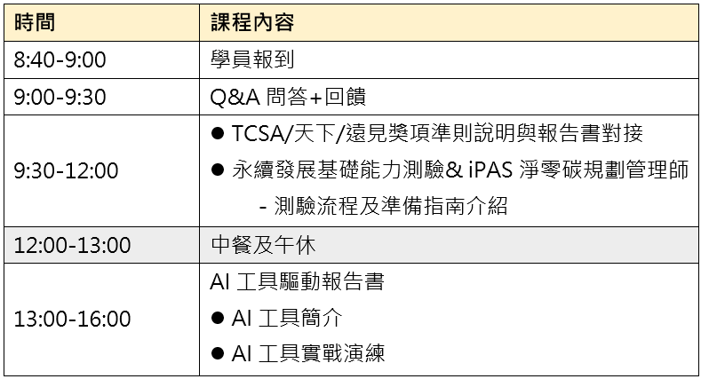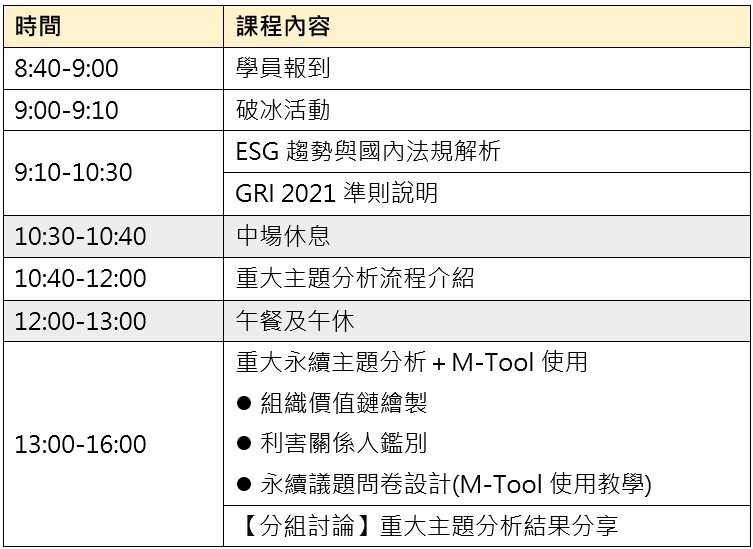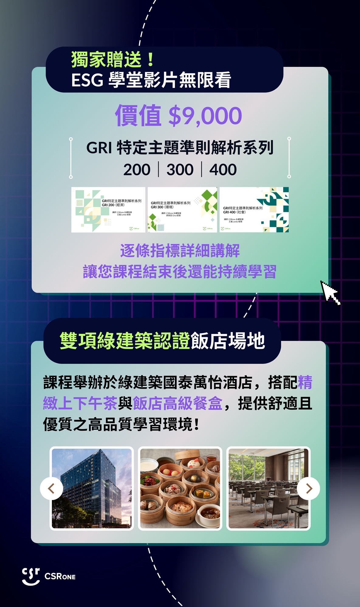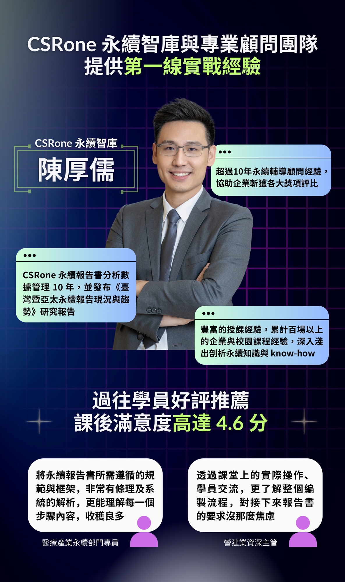 • 註2:進階課程推薦給熟悉報告書編製流程,或是曾經上過CSRone報告書課程的學員,若對於報告書編製不熟悉的學員建議選擇完整三日課程,較能達到好的學習效果