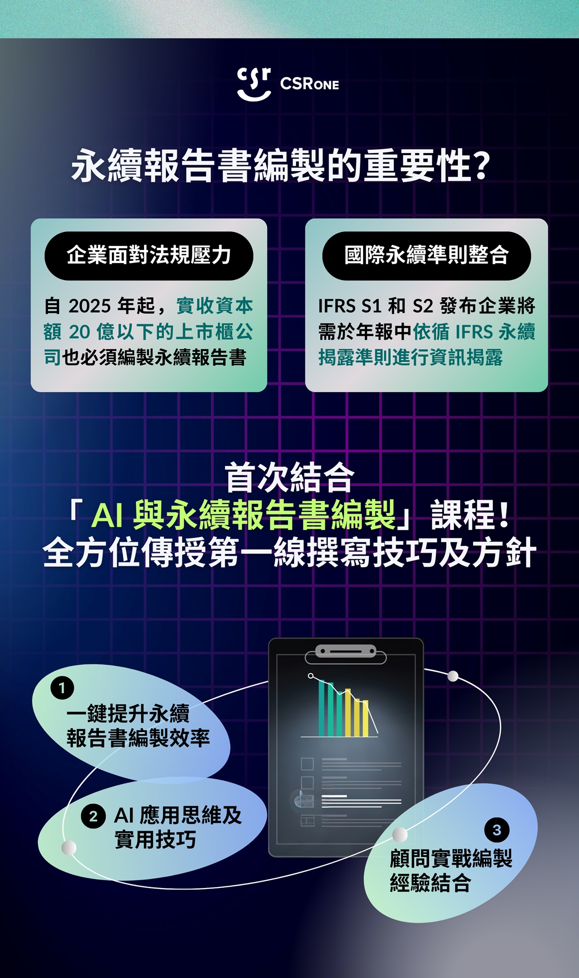 【活動取消】永續報告書編製實戰全攻略:撰寫指南及AI應用技巧