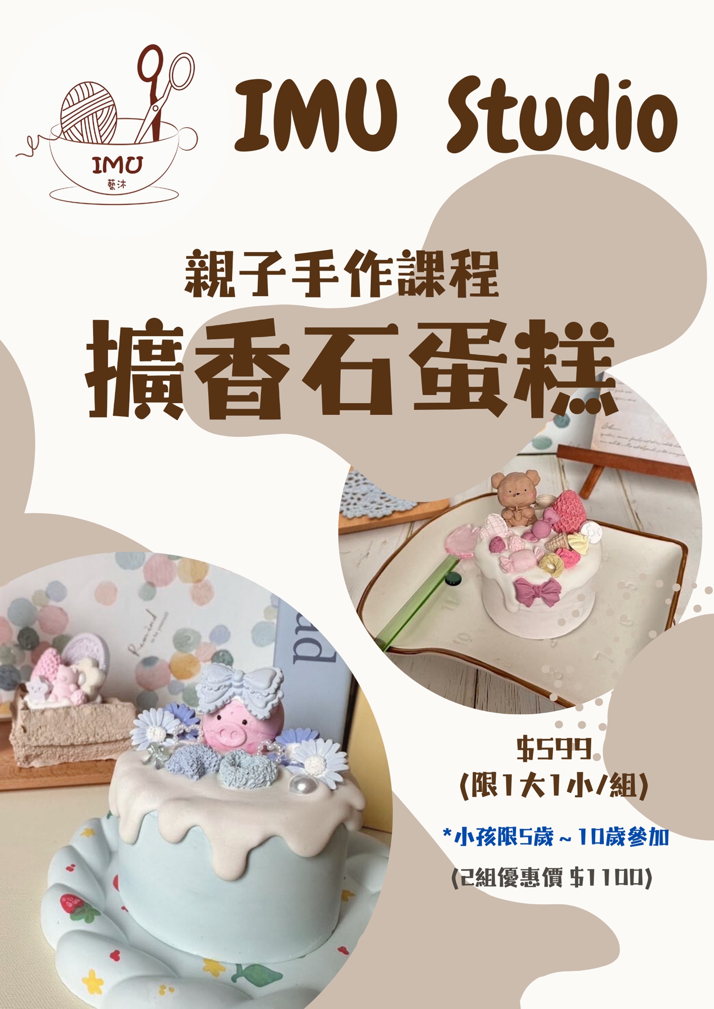 擴香石是一種神奇的小石材,能夠吸收並緩慢釋放香氣,讓你的空間時刻充滿迷人香氛!IMU Studio 使用高品質的石膏粉製作,效果更佳。在這個充滿樂趣的課程中,我們提供蛋糕形狀的模具,讓你選擇自己喜歡的蛋糕顏色,還有各種小配件供你裝飾,讓每一塊擴香石都獨一無二。課程非常適合初學者和手作愛好者,讓你輕鬆製作出個性化的禮物,送給朋友和家人,增添生活的儀式感!