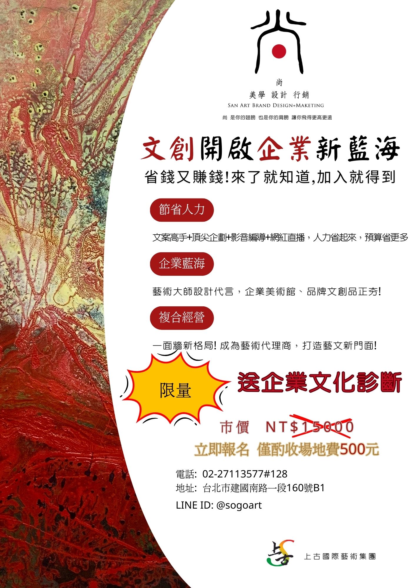 ☝挖掘企業文化財:結合藝術提升企業文化,開發各式「藝」創商品,開拓藝文金礦。
