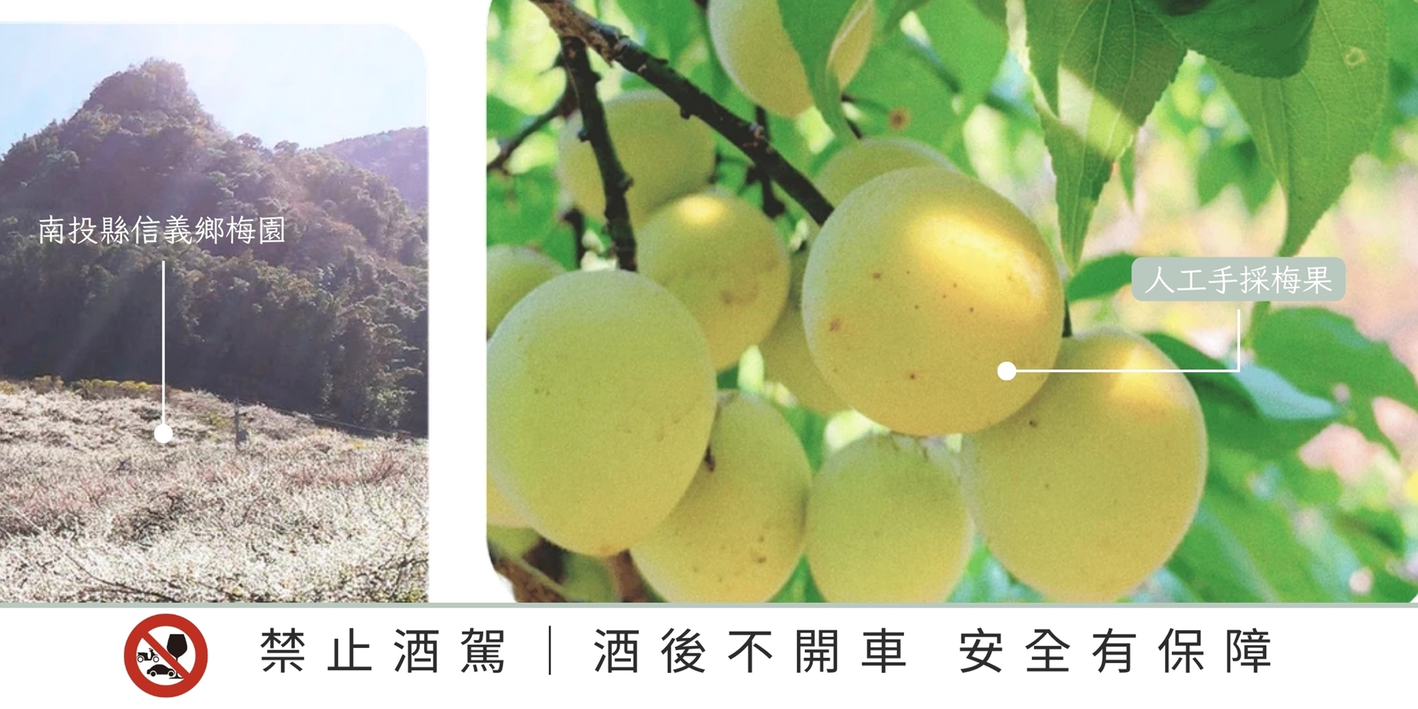 採用100%南投縣信義鄉無農藥栽培的上等梅子,全程人工手採品檢。