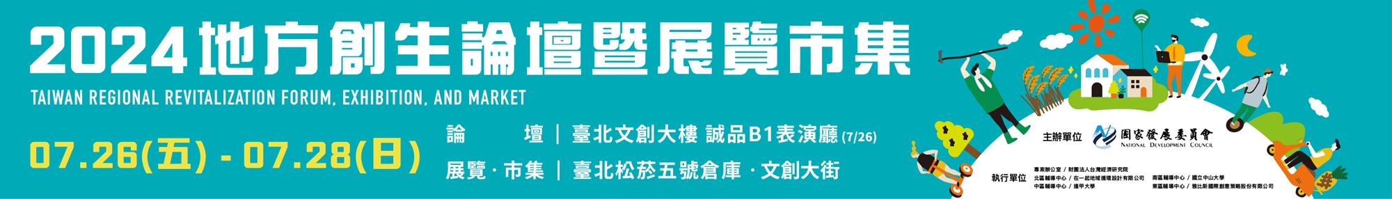 迄今,地方創生政策已經累積了豐碩成果。為了讓全國人民更深入了解地方創生,去年國發會舉辦了「2023地方創生論壇暨展覽市集」,受到廣大迴響,吸引超過7,000人次參加。為使各地地方創生能量得持續延續,今年(2024)將在7/26(五)至7/28(日)在松山文創園區舉行「2024地方創生論壇暨展覽市集」,讓參加民眾不僅可以聆聽論壇、參觀展覽,還能在現場購買地方創生的特色商品!