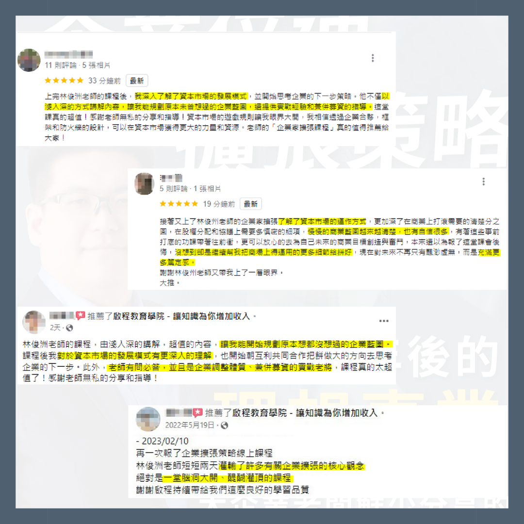 已經看到這裡的你,覺得林俊洲老師的企業家擴張策略價值多少呢?
