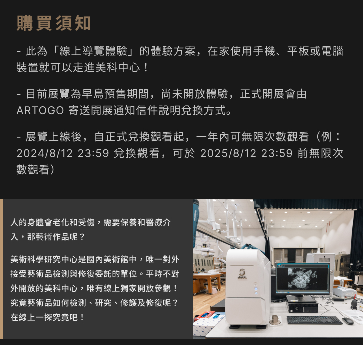 目前展覽尚為早鳥預售期間,尚未開放體驗,正式開展會由 ARTOGO 寄送開展通知信件說明兌換方式