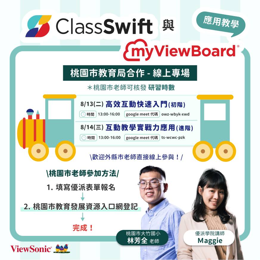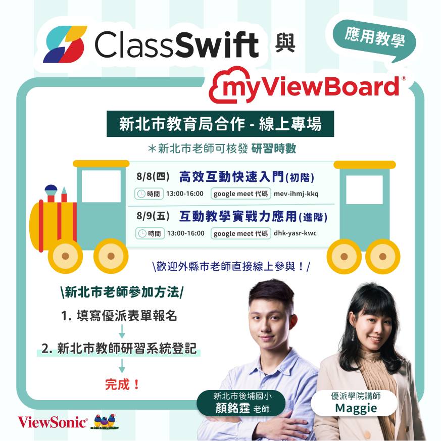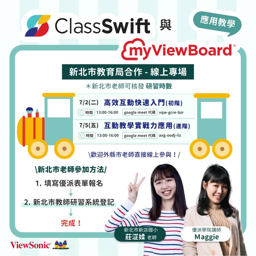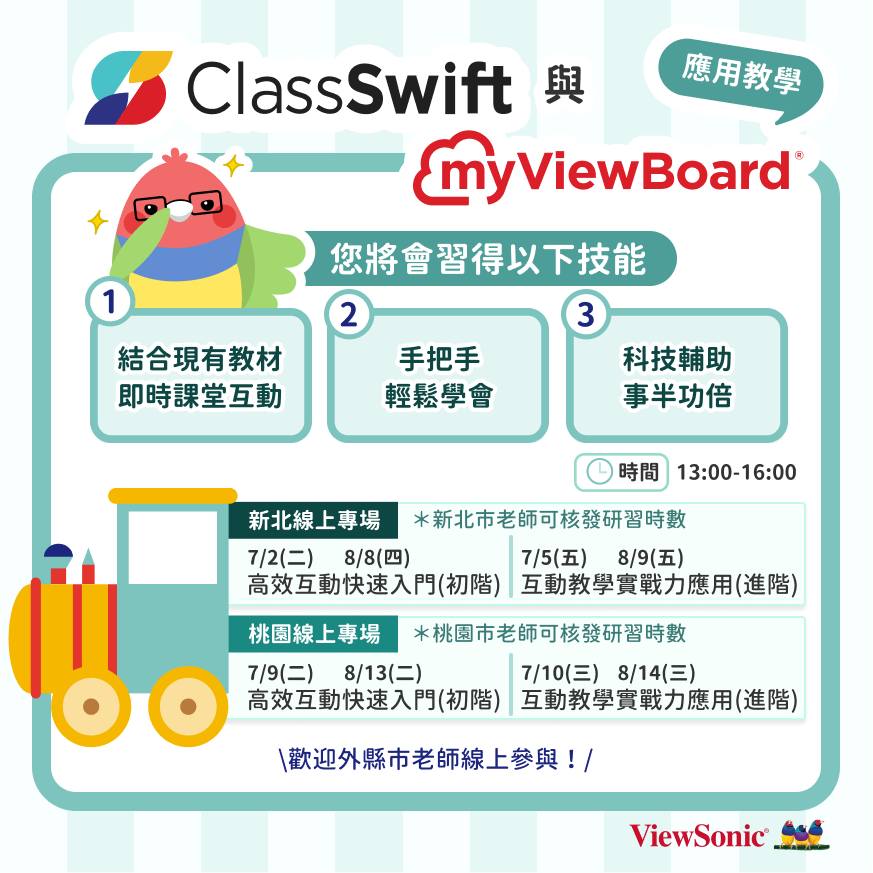 迎接學期末和暑假的來臨,教學科技增能可不能停!ViewSonic 與新北市教育局、桃園市教育局、臺南市教育網路中心、高雄市雙語暨數位學習推動辦公室合作開辦一系列研習!內容涵蓋 ClassSwift 與 myViewBoard 的初階和進階互動教學應用,深入探索高互動教學的實戰技巧。