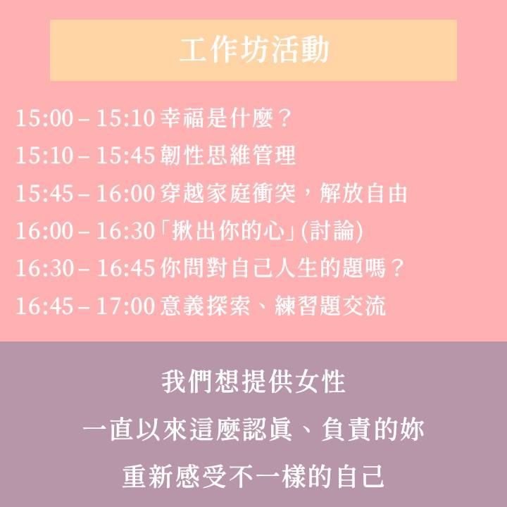 ※你將獲得:精緻餐食、講義、韌性心法、五感沉浸式體驗