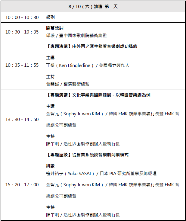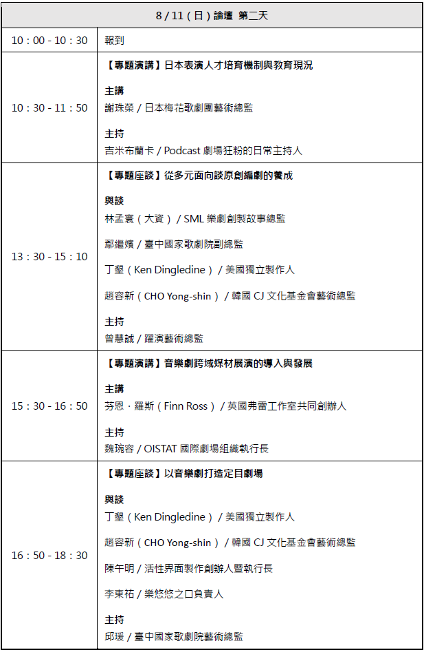 - 參加2024音樂劇產業國際論壇者,現場自由入座。