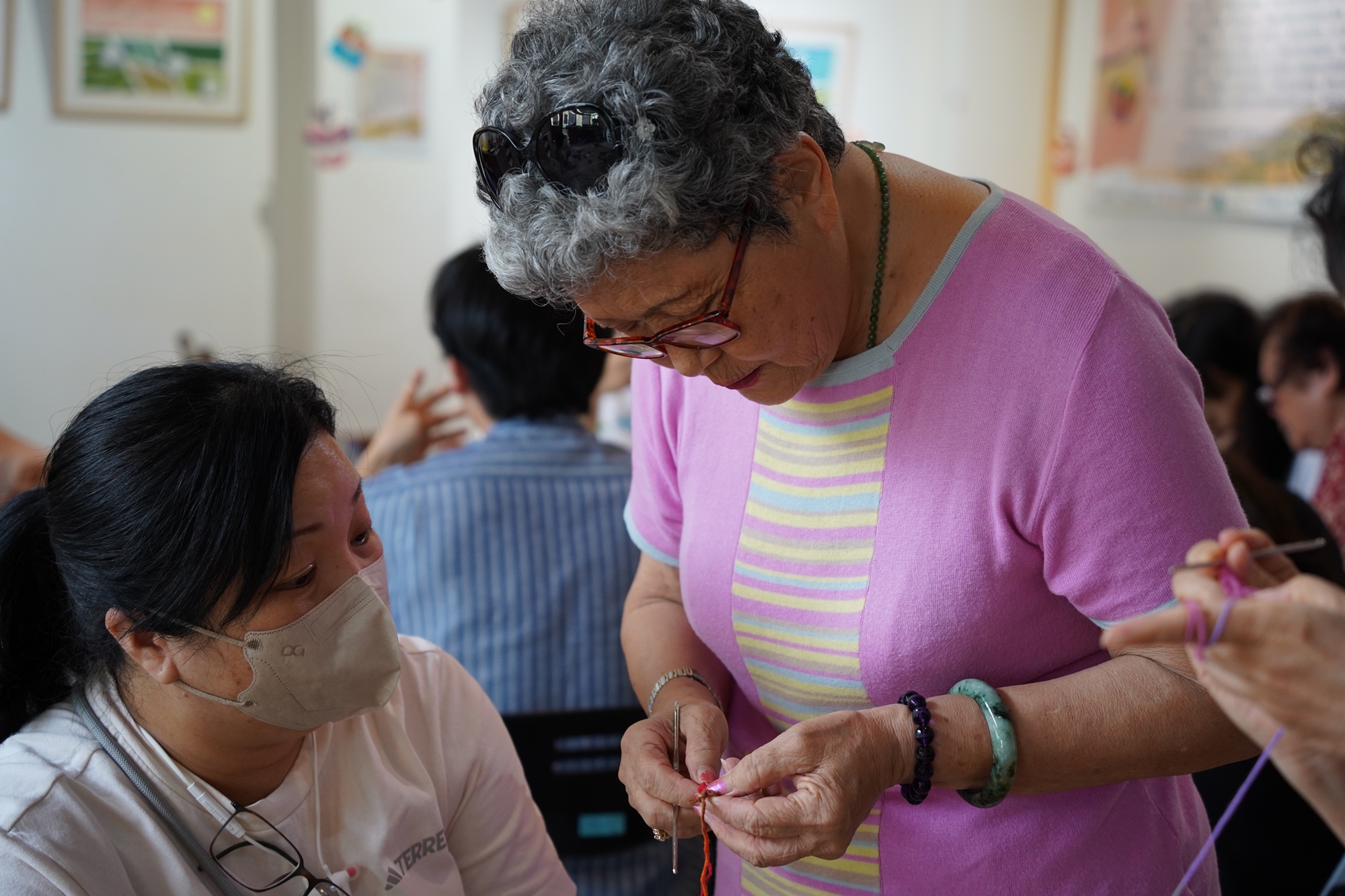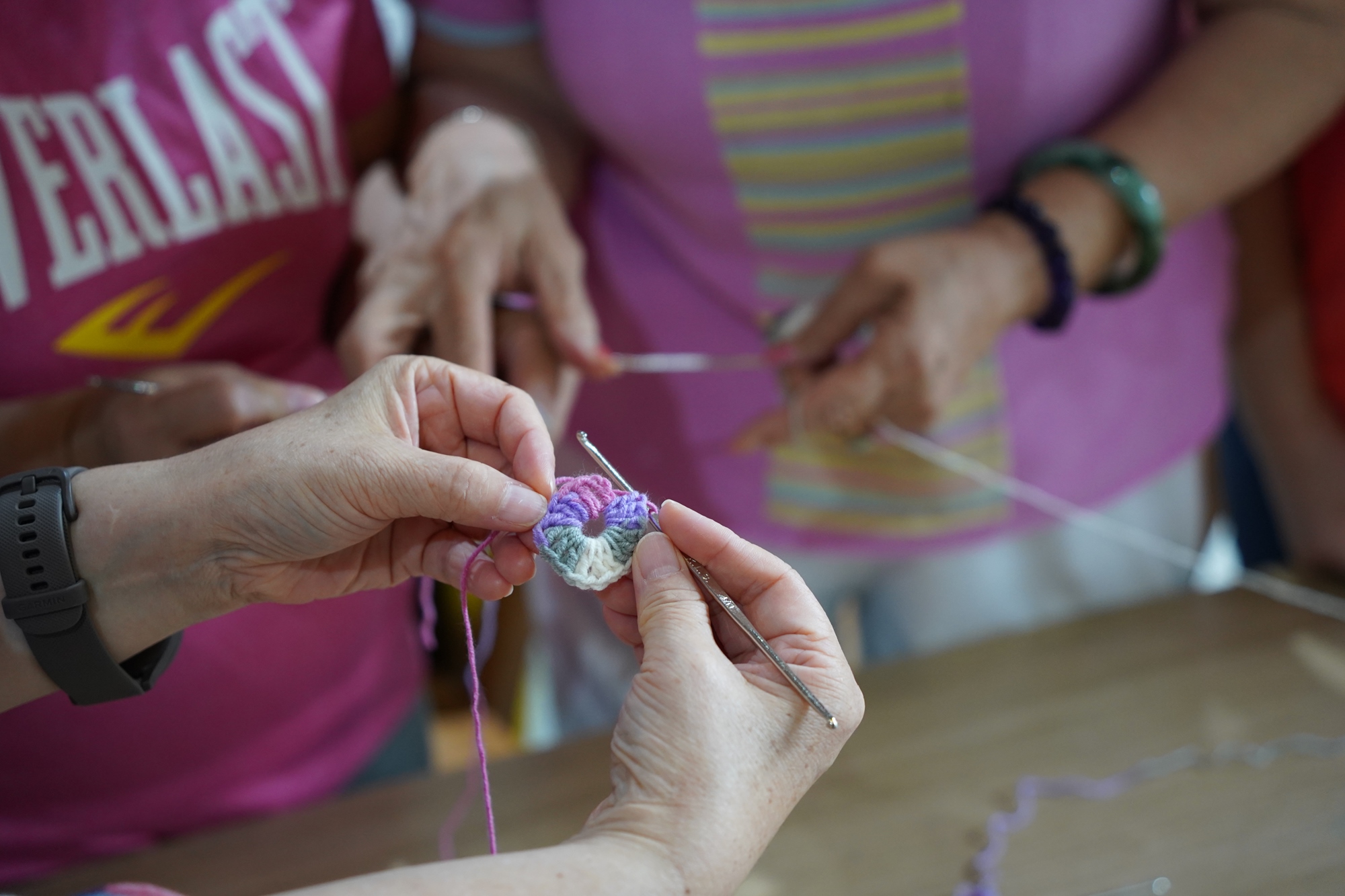 蟾蜍山大客廳的鮮豔桌巾、室內盆栽的杯墊,原來都是出自於社區媽媽們的鉤針手藝.ᐟ.ᐟ