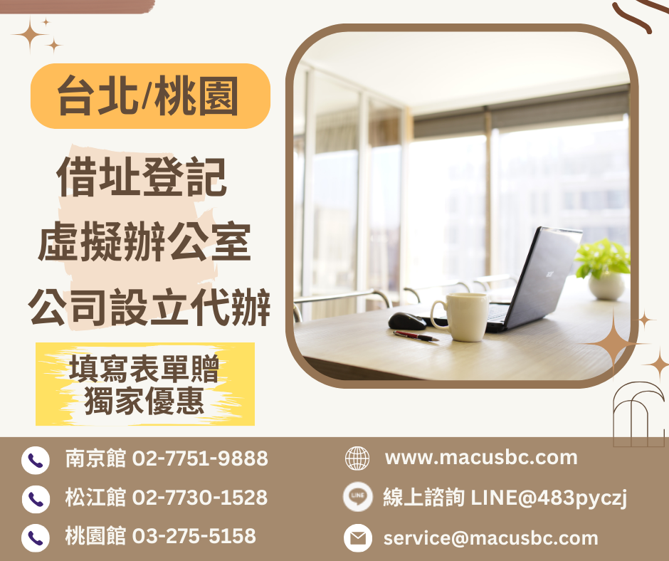 📍借址登記(虛擬辦公室)/公司設立代辦 (台北/桃園三館都有提供此服務)