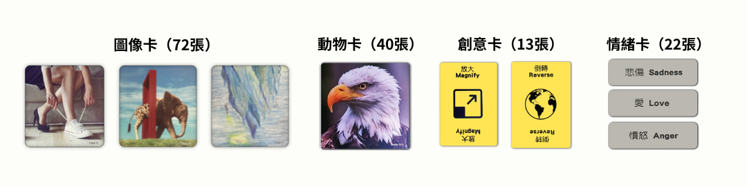 !nside Cards 是一套由香港ACF機構在2021年設計的多功能牌卡。它包含了8種不同類型的卡片,如圖像卡、動物卡、情緒卡等,每種卡片都可以獨立使用,也可以靈活組合。對於牌卡有興趣的學習者,只要一盒就能滿足絕大多數的應用場景!
