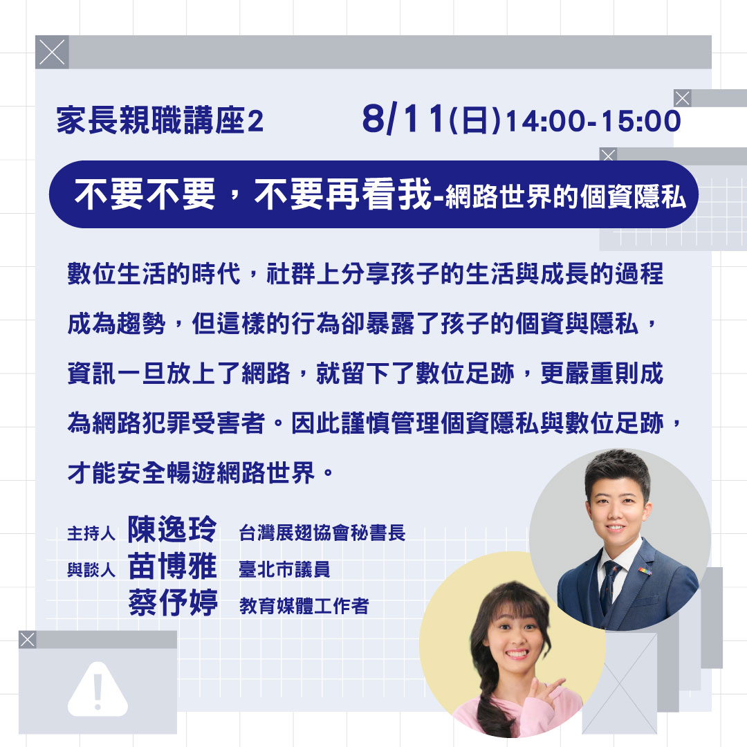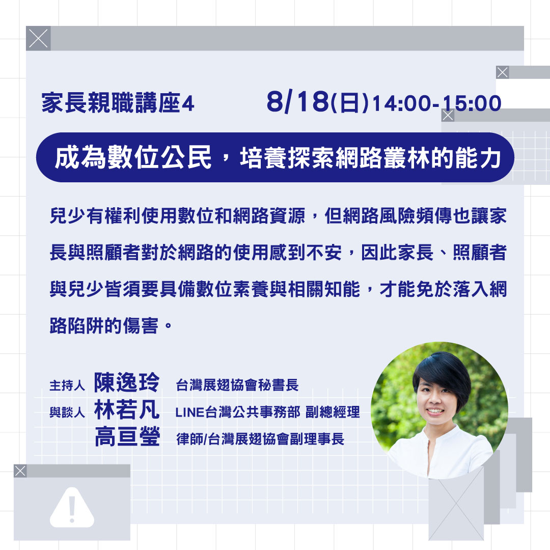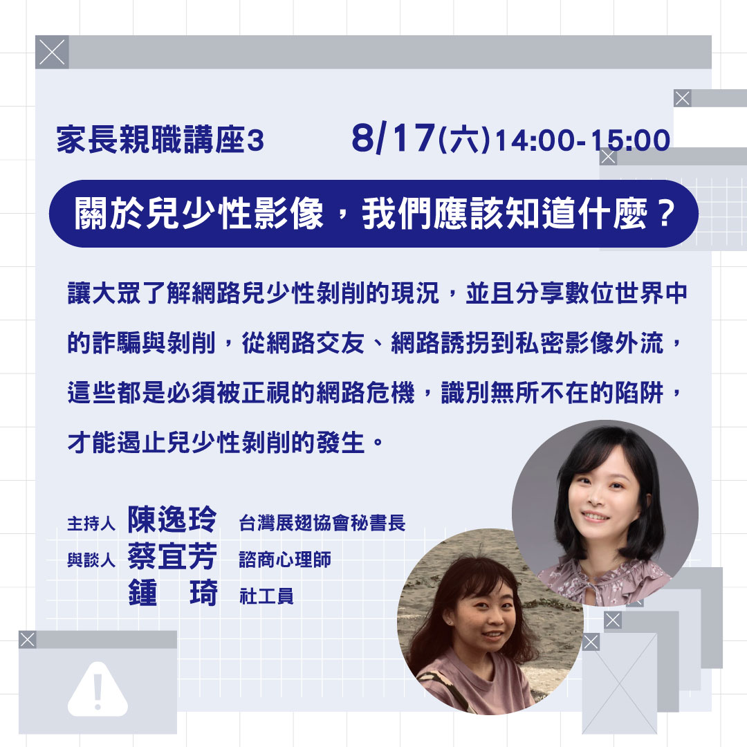 台灣兒少早已進入網路世界,數位科技提供多樣的功能,也深深影響兒少的生活及成長學習,但兒少在探索數位世界的同時,遭受個資隱私外洩、網路霸凌、網路誘拐、網路交友風險等事件層出不窮,伴隨而至的風險與危機亦不容小覷。