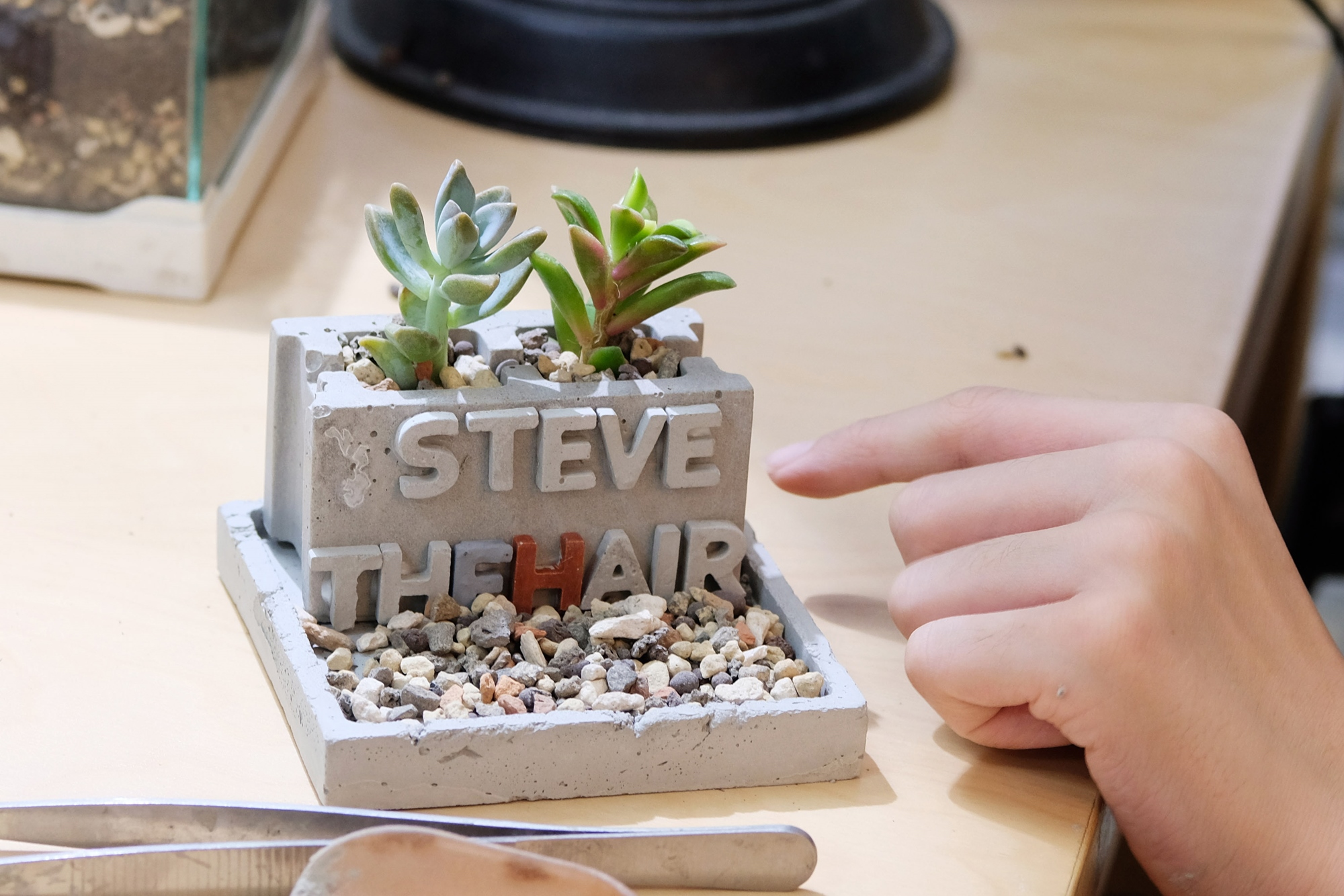 1.矽膠模灌水泥體驗。此活動為30分鐘快速體驗,水泥硬化需2-3小時,所以學員灌注的水泥成品,會留給將來的學員使用。