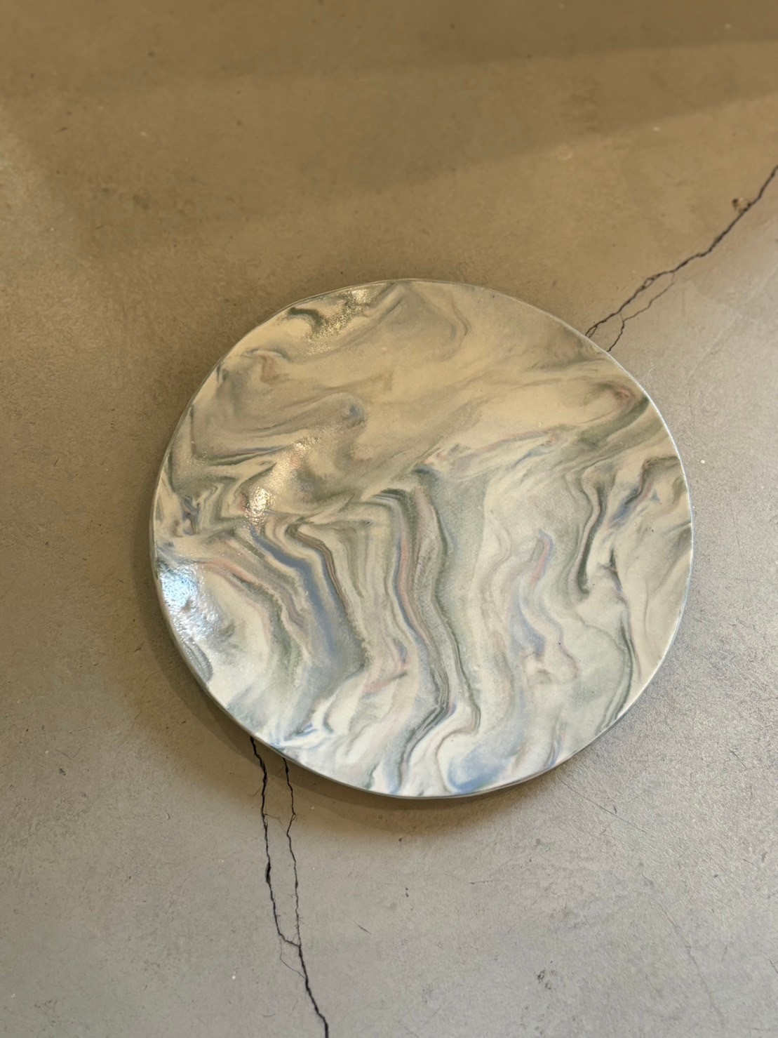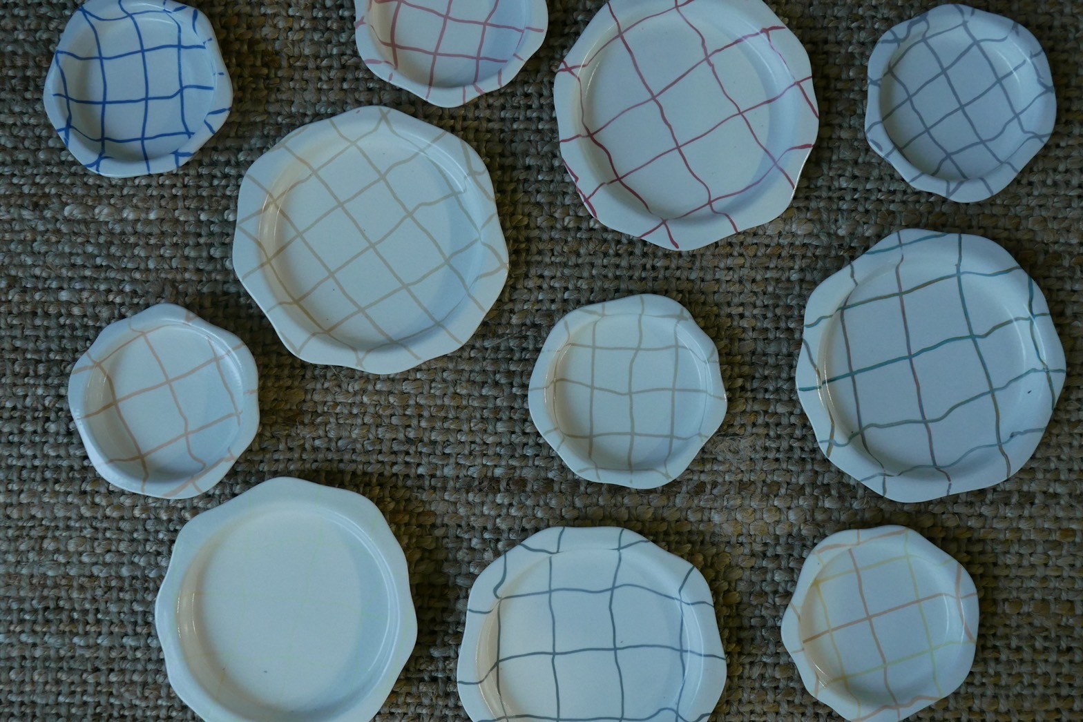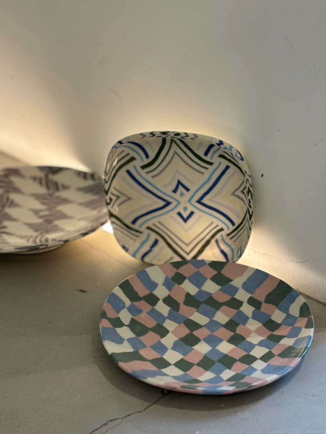 本次運用絞胎、鑲嵌的色土技法,製作出繽紛的作3件。