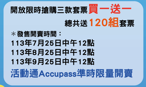 4.票價會因物價有所變動,恕不接受任何差額退費或退票,不便之處敬請見諒。