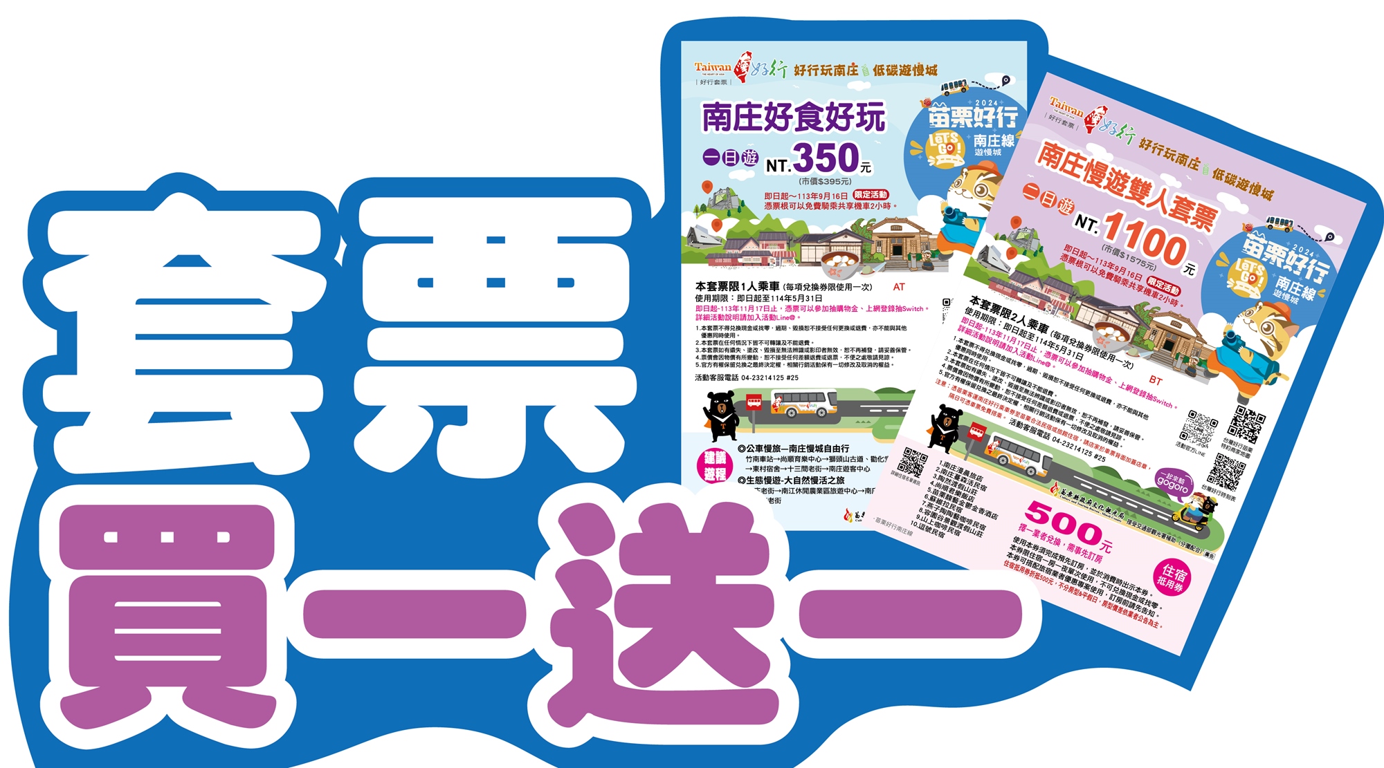 活動說明:凡只要姓名中有【南】、【庄】、【台】、【灣】、【好】、【行】任一相同字(同音字不算),即可用【免費兌換】將【台灣好行南庄輕旅行一日券套票】帶回家(名額有限)