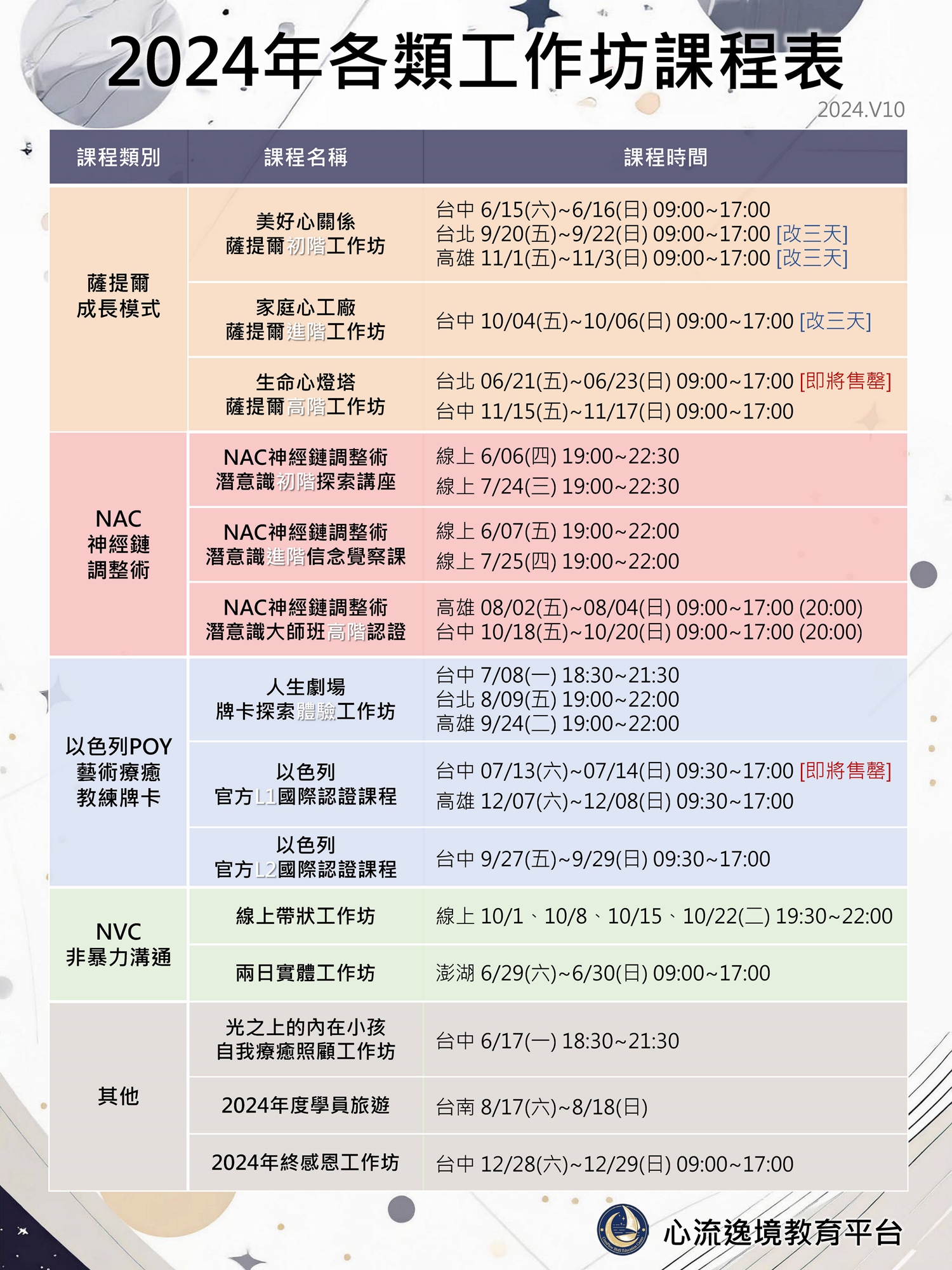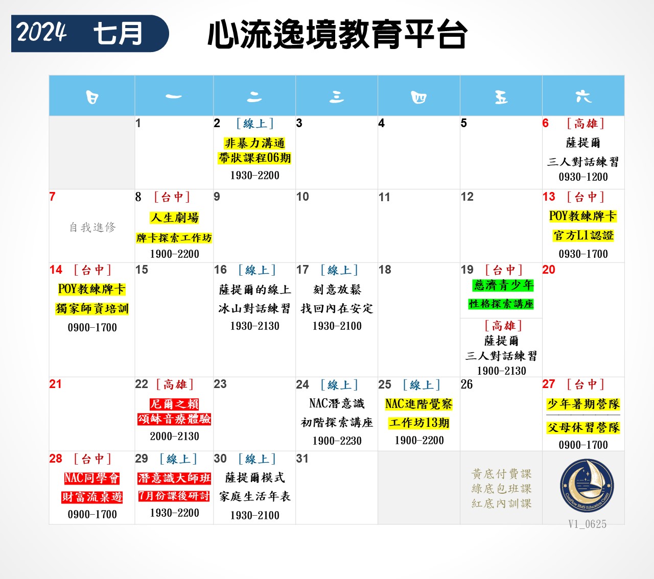 ❤心流逸境教育平台-七月份課程表❤