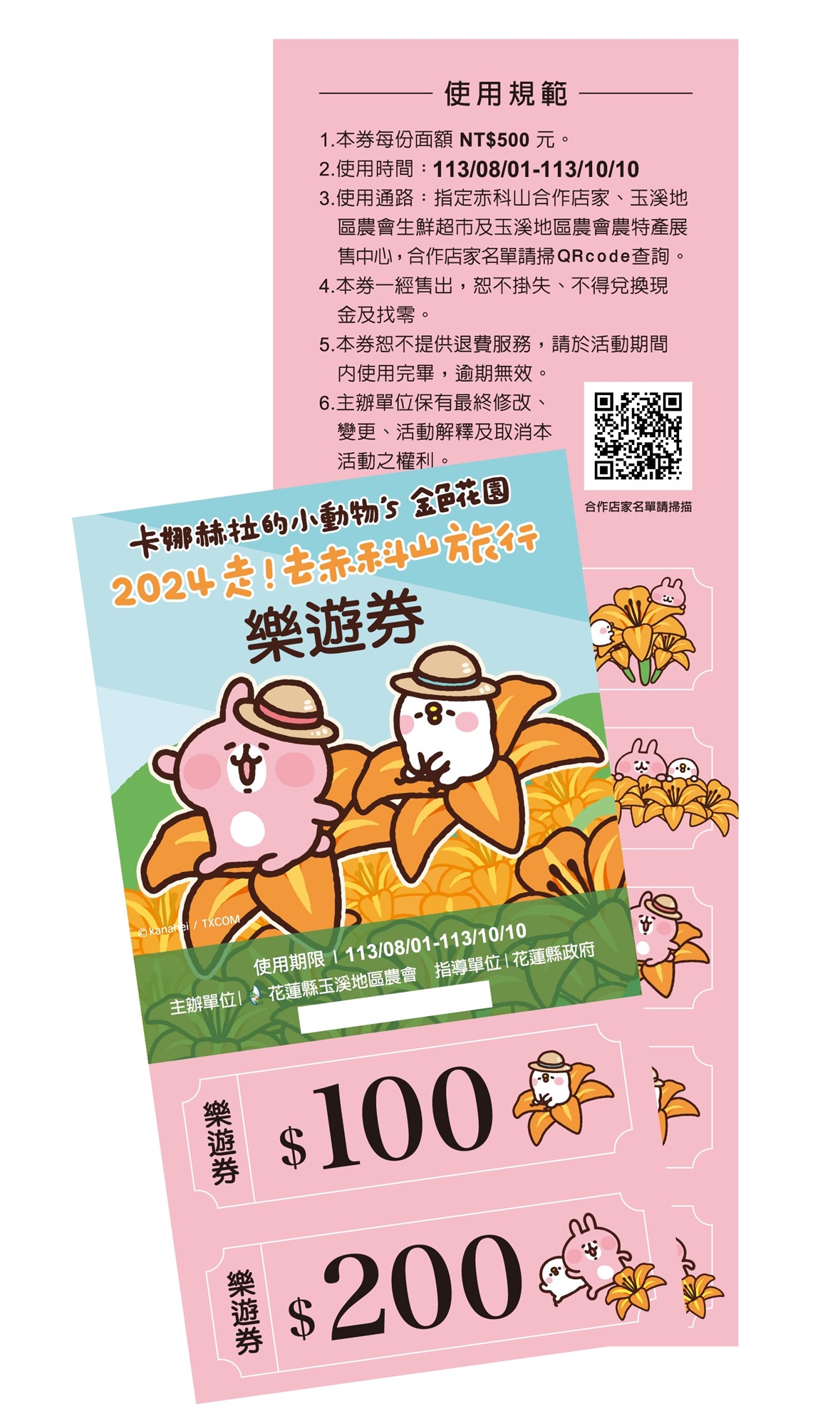 - 指定赤科山合作店家(名單詳情請至 2024走!去赤科山旅行網站.山中物好農分頁查詢)