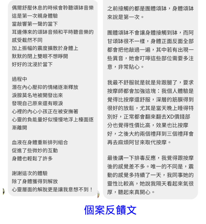 頌缽體驗個案反饋: