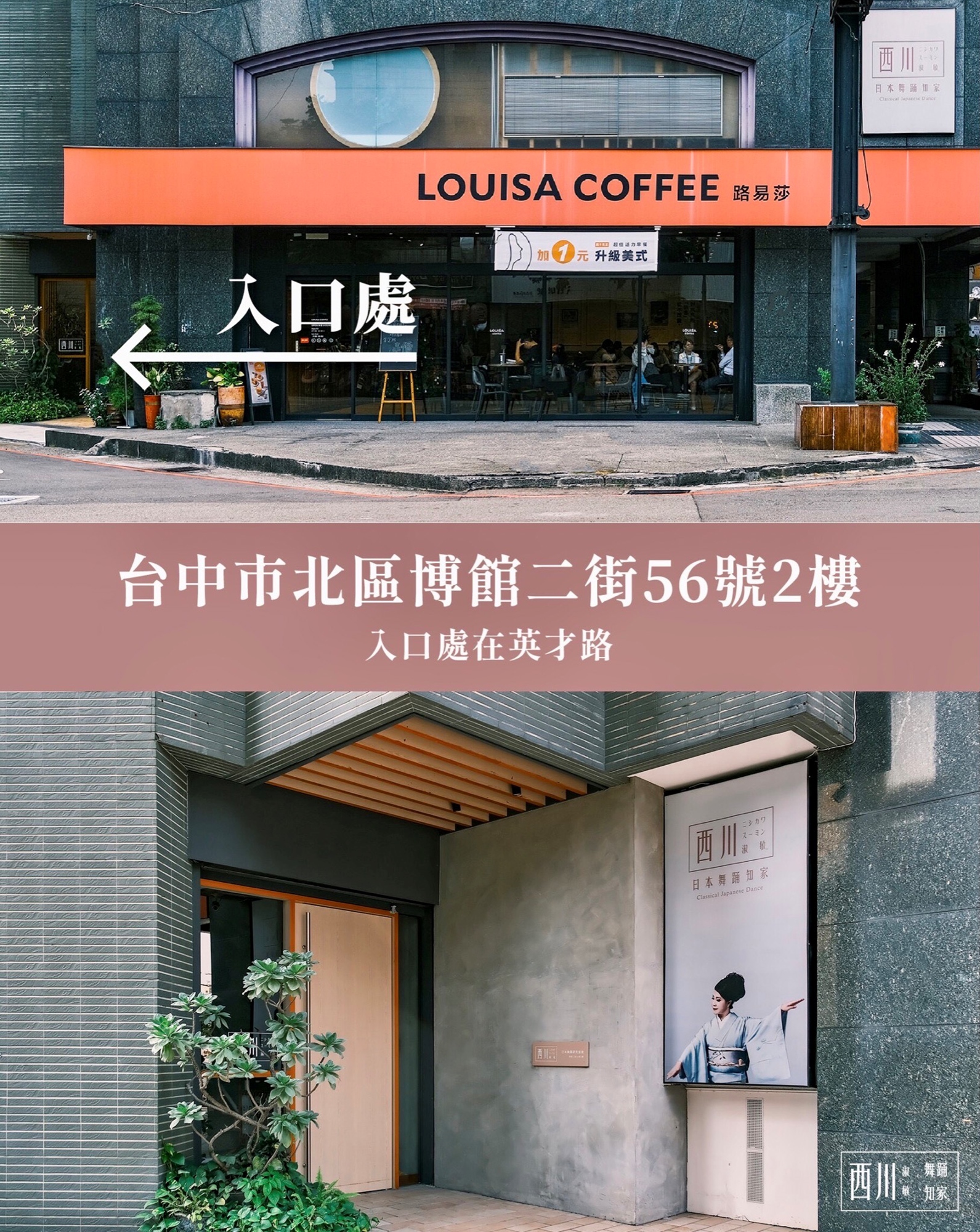 西川淑敏舞踊知家-台中市北區博館二街56號2樓(※ 入口處在英才路,路易莎咖啡左手邊的巷子裡,請直接上2樓)