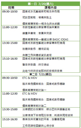3、認識表達性治療連續系統(ETC)與媒材量度變數(MDV)理論,學習如何看待創作歴程和作品、如何問話和引導個案與作品口語及非口語對話(藝療視框)。