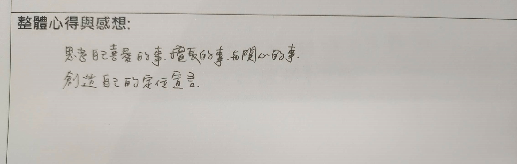 • 思考自己喜愛、擅長、關心的事,創造自己的定位宣言。