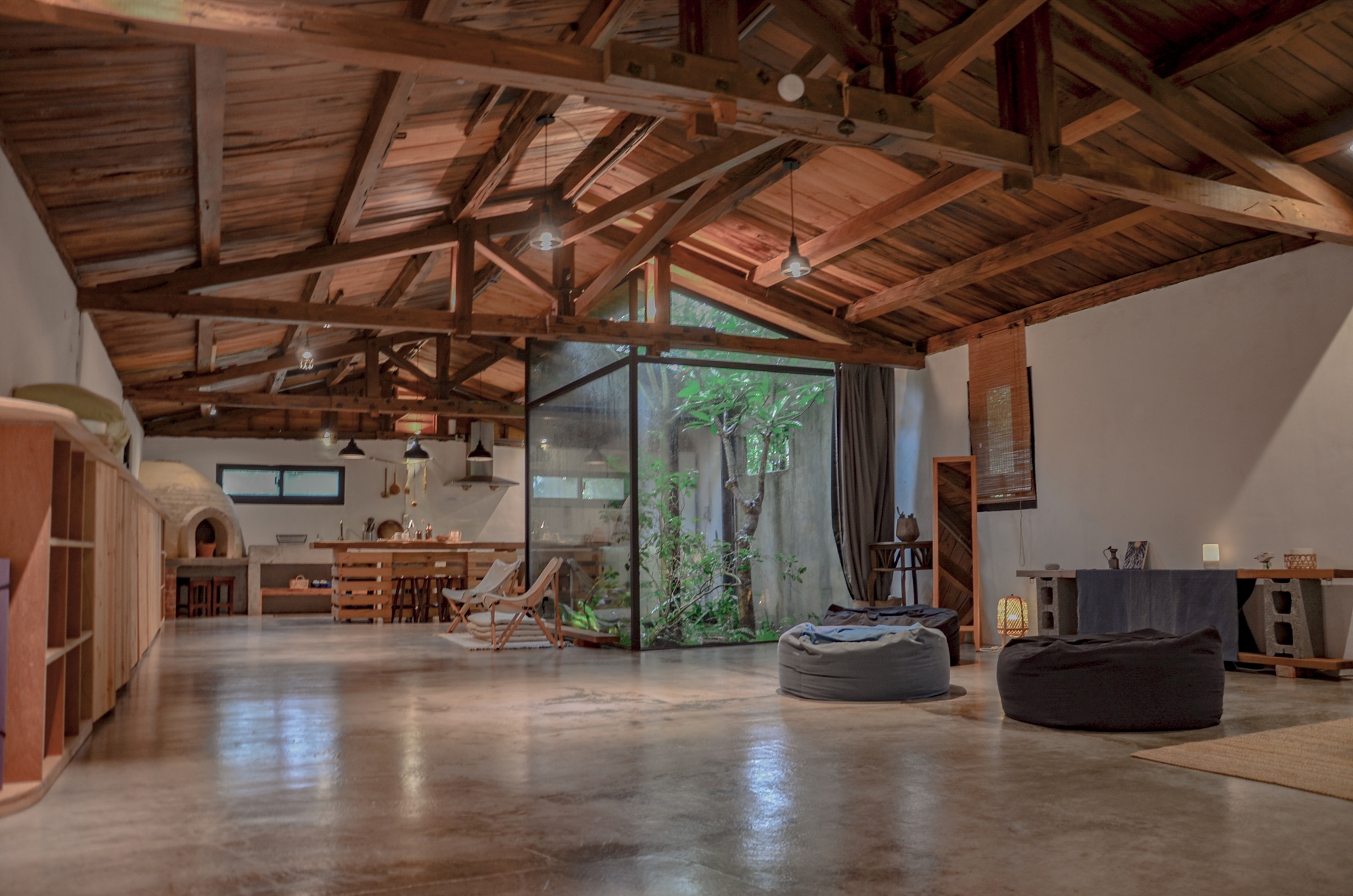 由阿公時代留下來的老穀倉改建而成的大穀倉,是「小雨林」的招牌之一,以陽光、雨水、植物作為整體空間依循的方向,重新打造一個與自然共生的療癒空間。