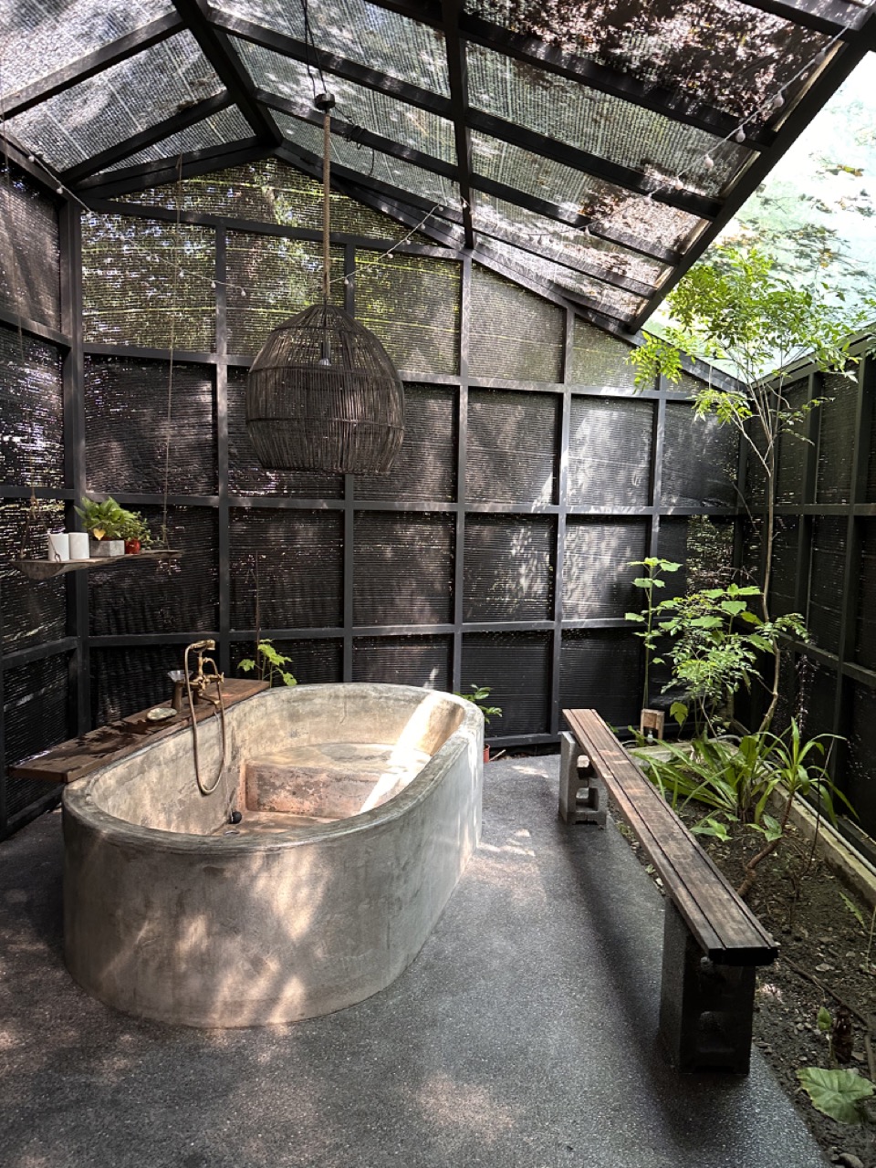 綠樹和植栽環繞四周,低語著大自然的呢喃,使人彷如置身於森林的懷抱之中,陽光透過樹枝輕輕灑落在池底,斑駁的光影隨風舞動。