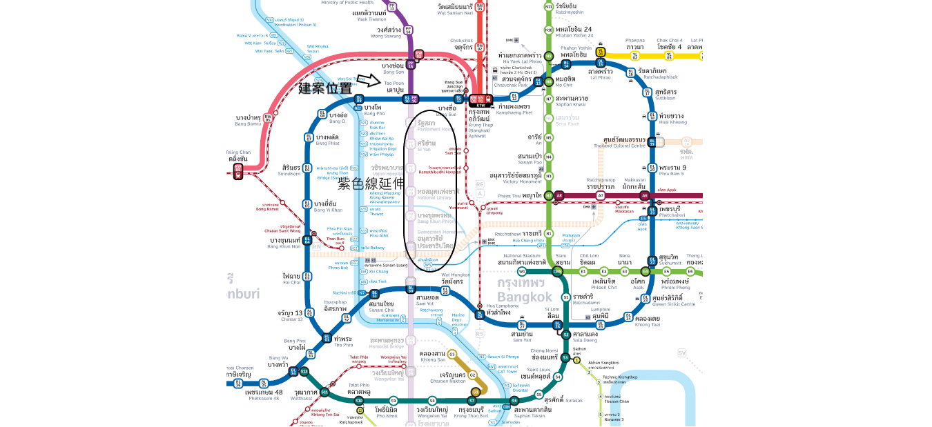 MRT紫色線(南段)預計在2027年完工,設計為雙軌系統,將經過許多住宅區以及主要地點如泰國國會大廈、泰國銀行、唐人街、舊城區和學校,將從TAOPOON 轉運站起始,與泰國國會大廈站的連結將是曼谷唯一連結此區2行政區的軌道。