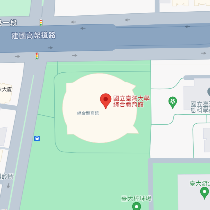 動線:搭乘公車至臺大綜合體育館站,下車步行約1分鐘,即可抵達場館。
