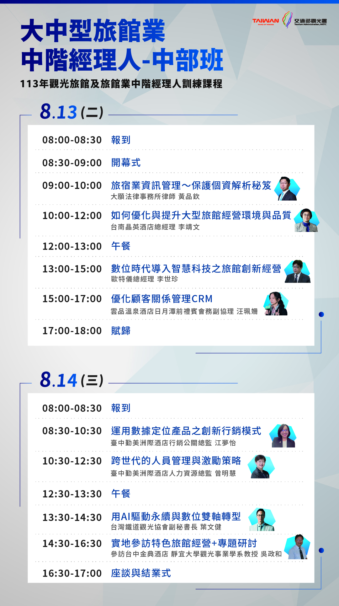 113年觀光旅館及旅館業中階經理人訓練課程-大中型旅館業中階經理人(中部班)