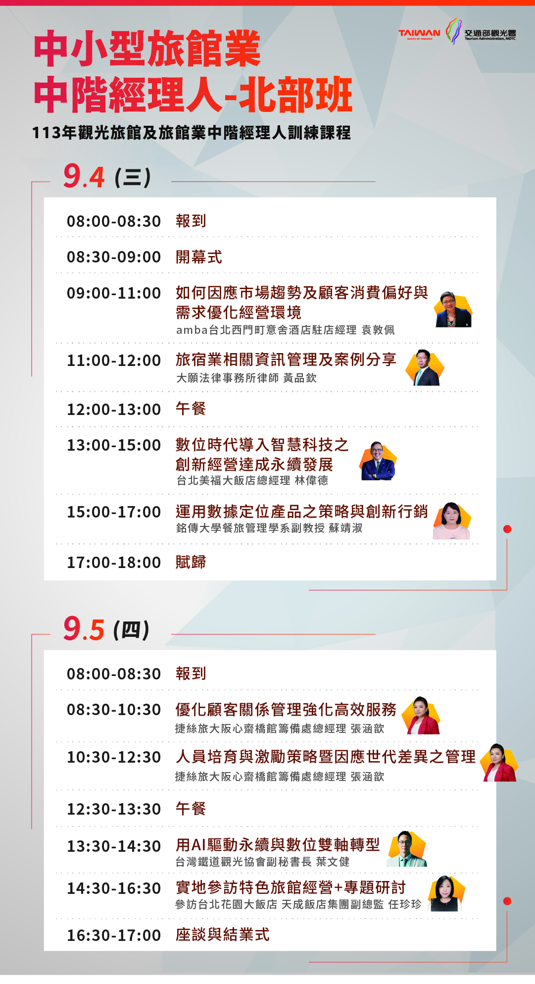 113年觀光旅館及旅館業中階經理人訓練課程-中小型旅館業中階經理人(北部班)