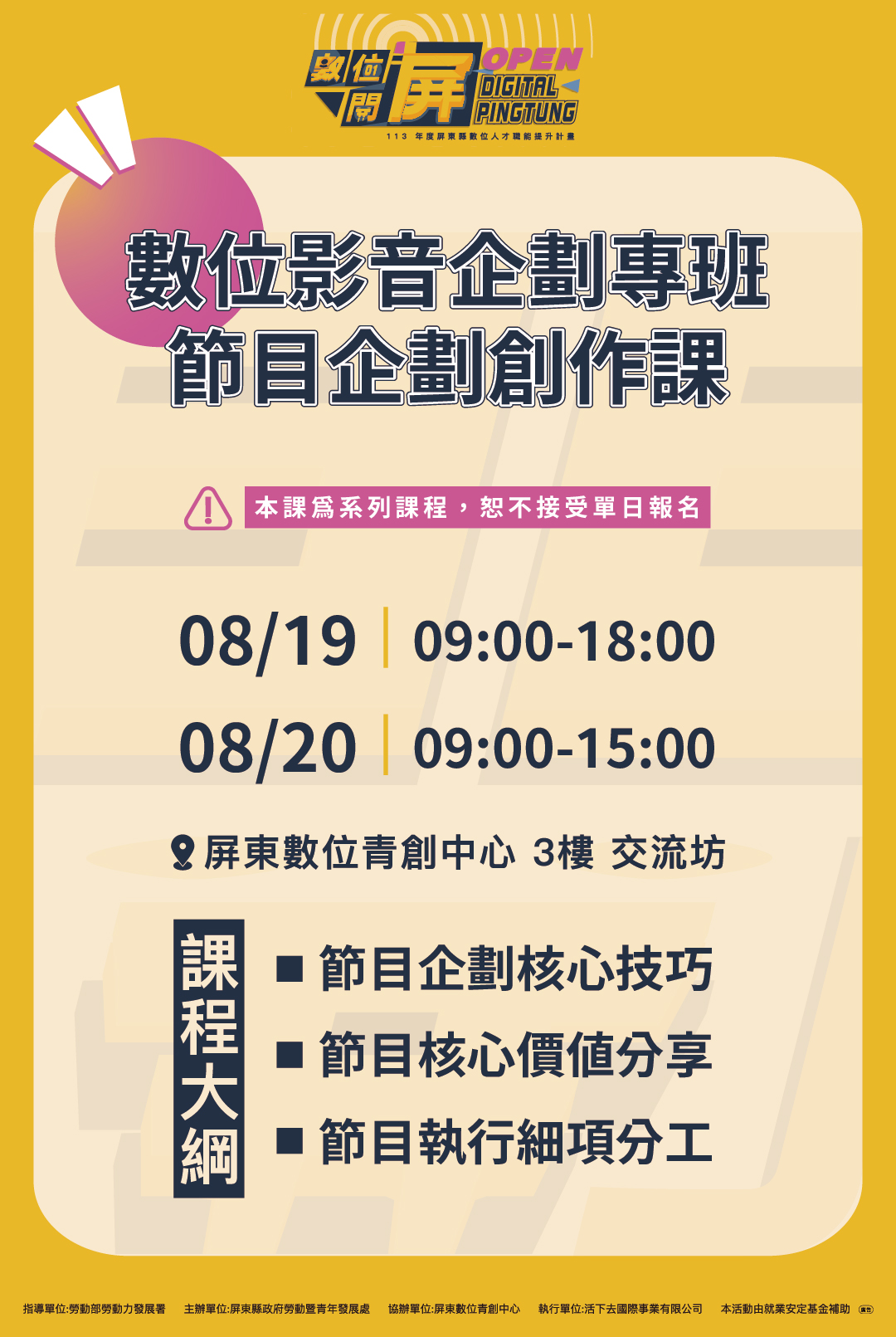 不要再等!快加入『數位影音企劃專班 – 節目企劃創作課』