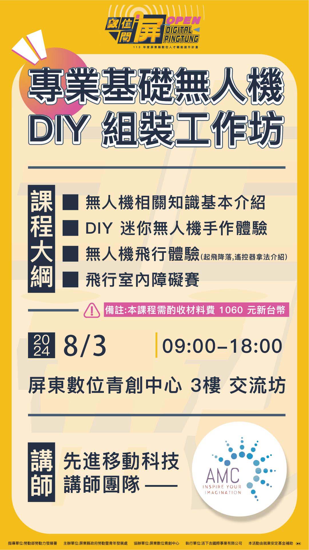 說明:材料費為無人機材料費,課程組裝完成後,無人機供您帶走