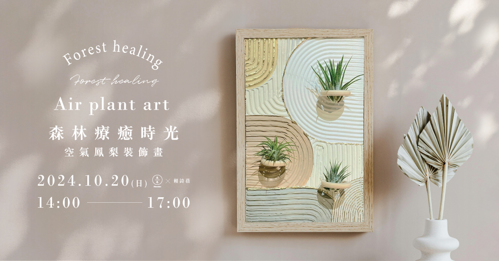 相信大家都是初次聽見,它不需要土壤來吸取養份,大多數只要透過空氣得以生存,是世界上唯一完全生於空氣中的植物喔。不用土壤與大量的水分,超適合植物新手入門,讓大家跟著老師一起進入空氣鳳梨的世界,將空間角落打造成屬於自己的小森林吧。