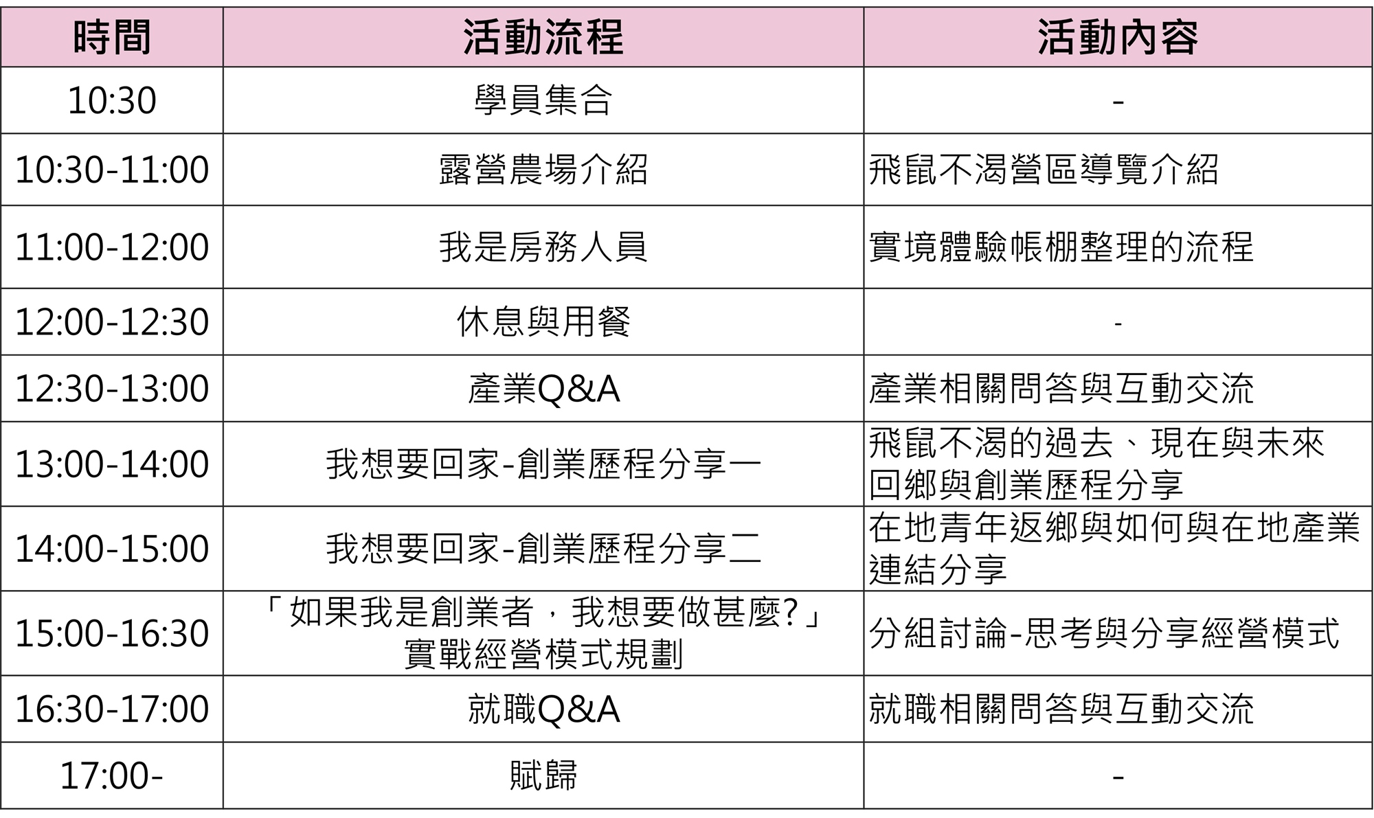 - 活動皆全程免費,並提供餐食、保險及接駁。