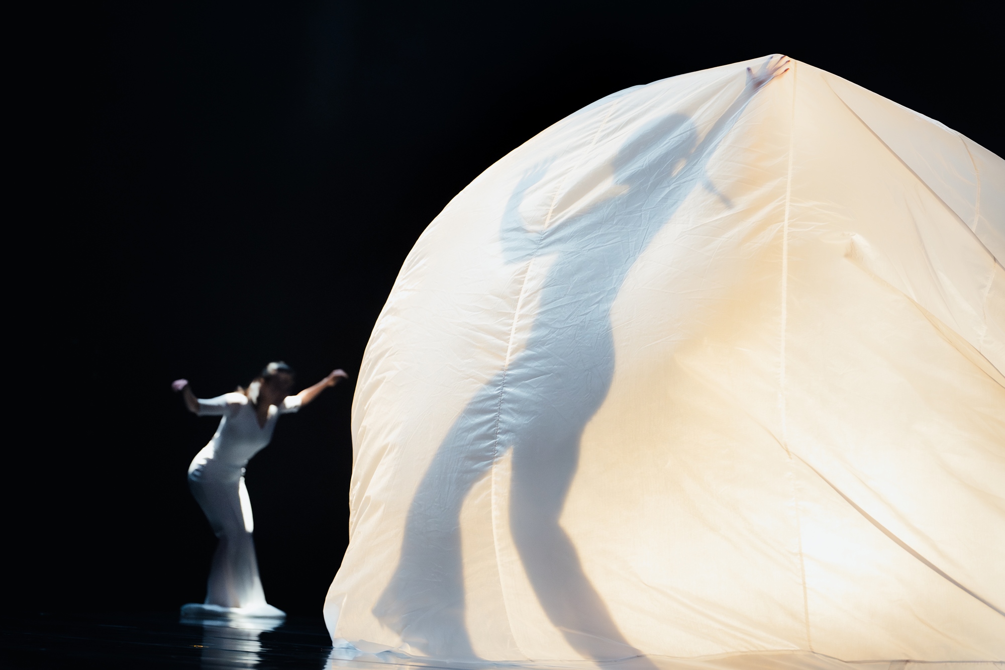 我們常說曖昧時時空會凝結,或是冷戰期的冰裂感,親密關係中有很多的交流都被存放在空氣裡,我們試圖去抓住風或是各式的氣體樣態,透過氣體裝置和兩位舞者的互動,將那些難以言喻的情感狀態視覺化。