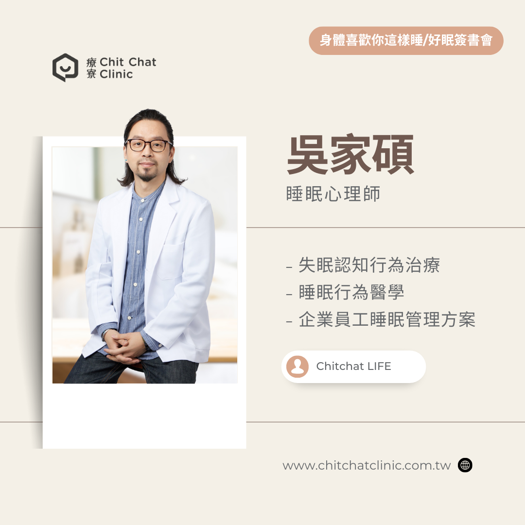 粉專:睡眠管理職人——吳家碩臨床心理師、好夢心理治療所