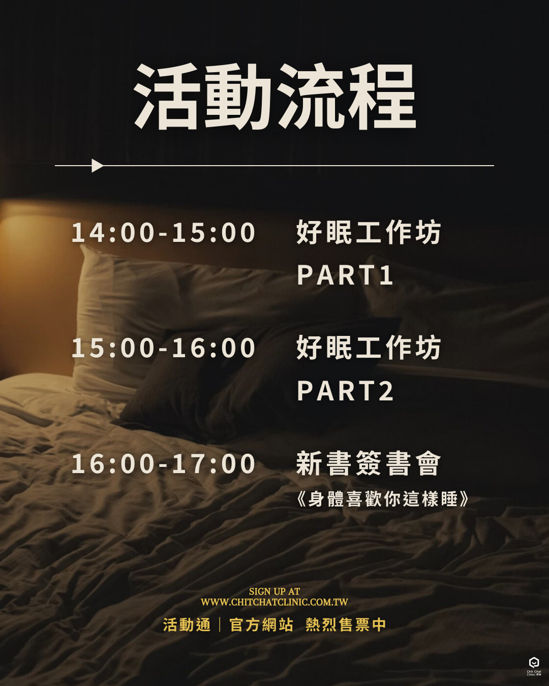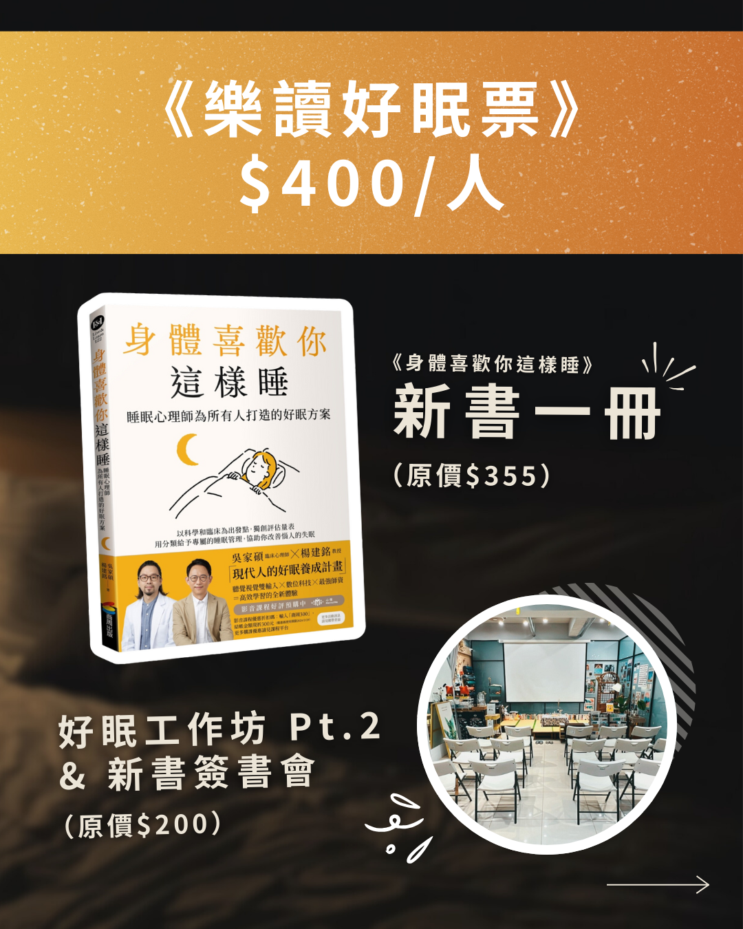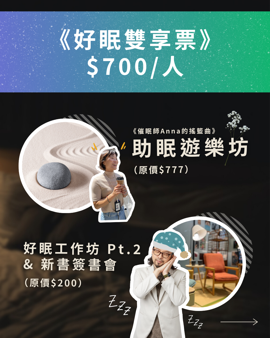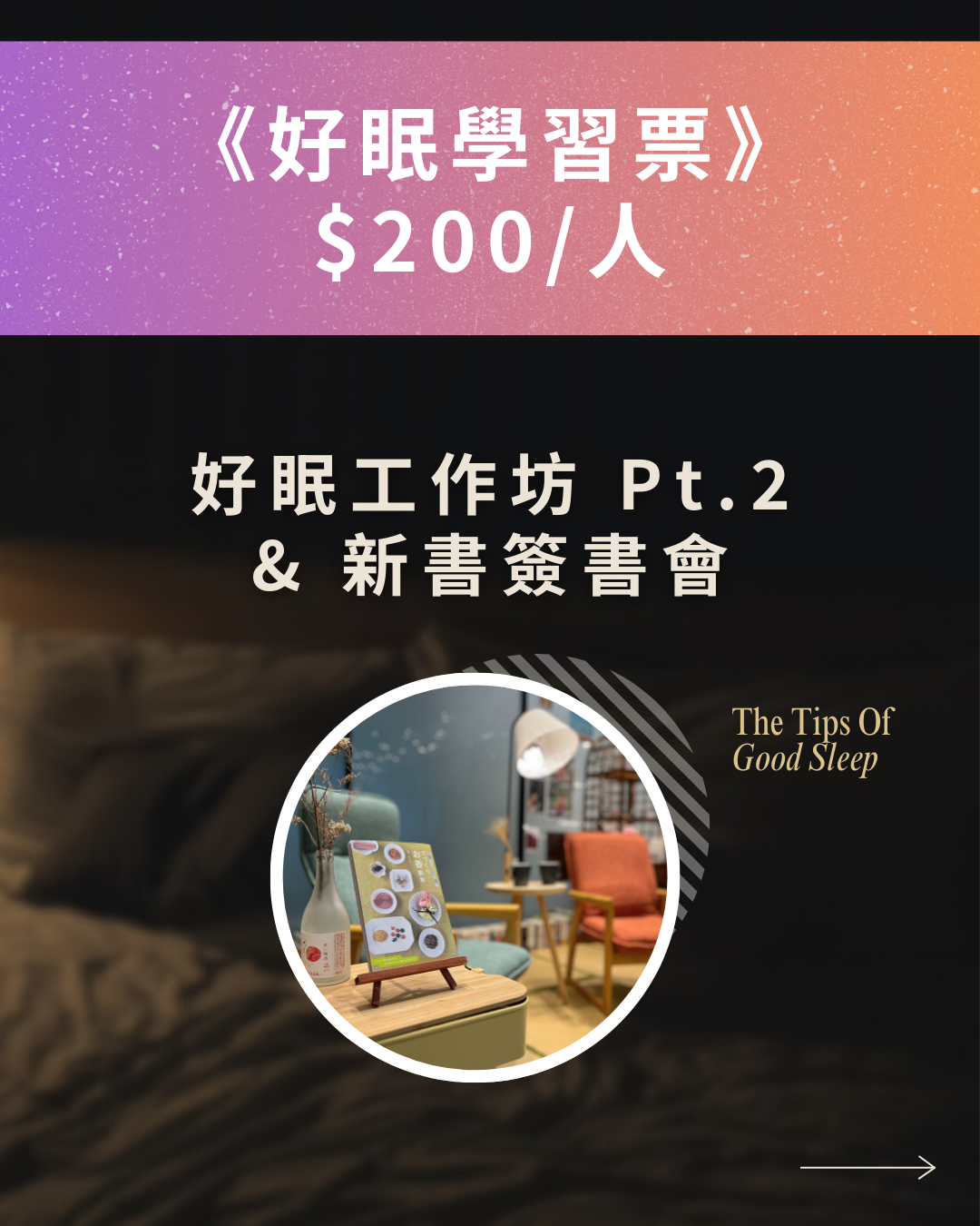 說明:票券包含好眠工作坊 Pt 2 & 新書簽書會(15:00-17:00)。