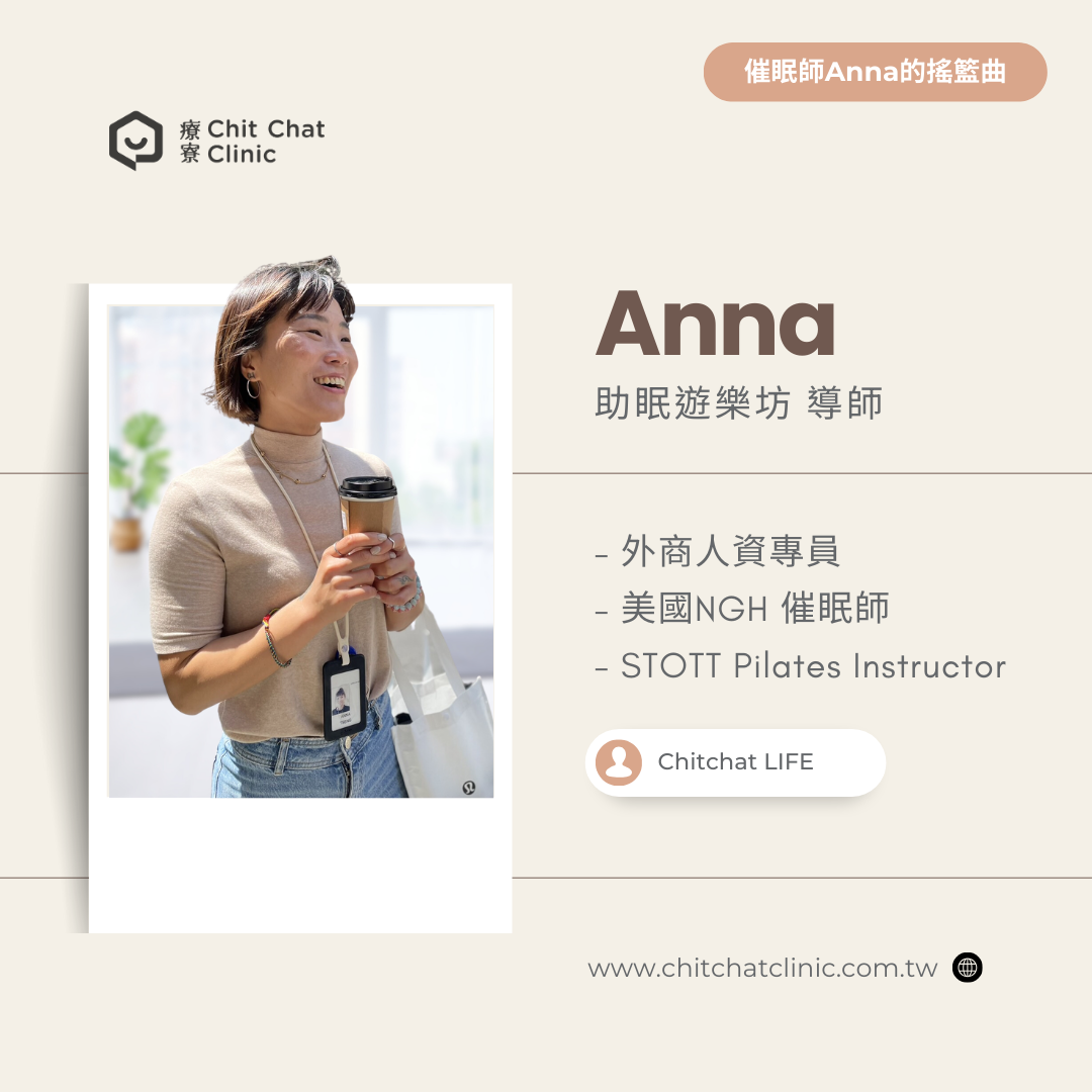Anna推崇將所學的理論落實於生活之中,透過身體感知連結身心靈,並經過不斷的身體力行去感受、探索,找出謎題的解答及身心靈的平衡。