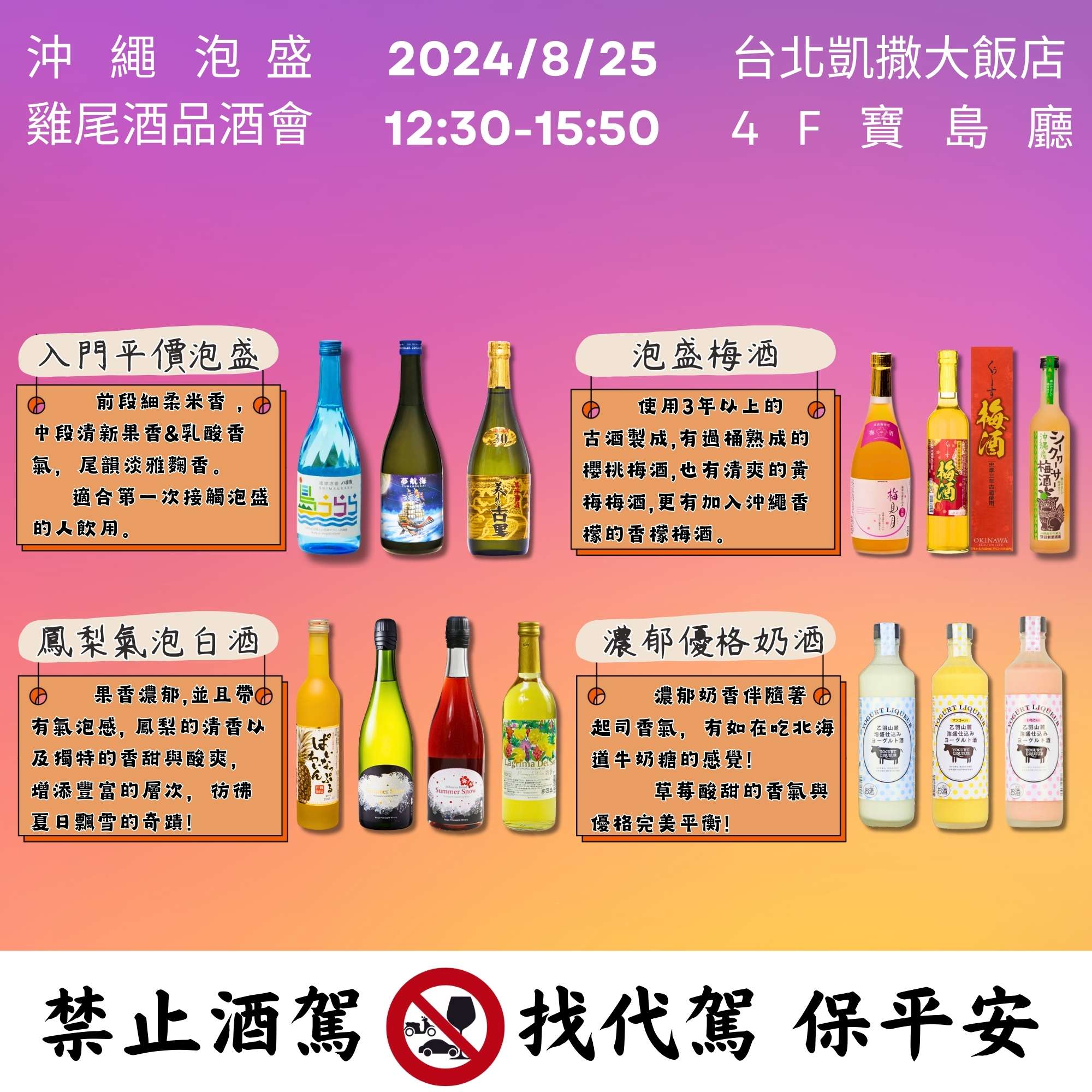 現場將會展示出將近50種不同的沖繩泡盛酒,其中還有從未在台灣發表過的特殊酒款,都歡迎試飲,若有心儀的酒款,則可以用低於市價的價格把它帶回家!!