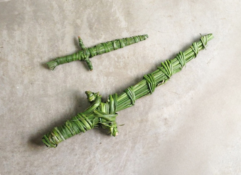 活用小農採集的茅草材料,編織用屬於自己的「草刀」