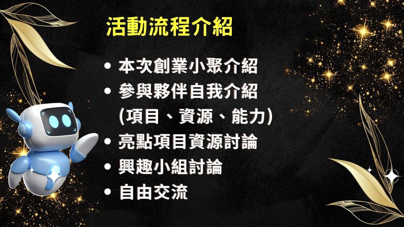 感謝您報名參加小老闆創業斜槓資源共享圈的活動!為了提供更好的活動體驗,我們特別安排了以下內容: