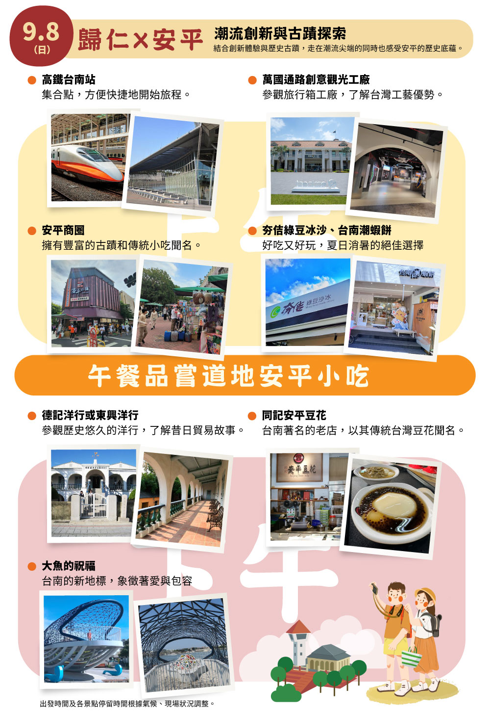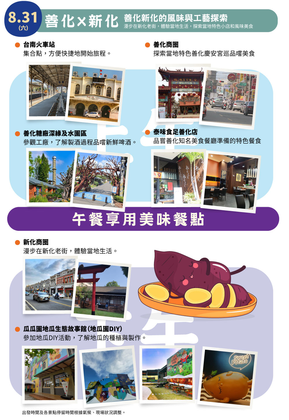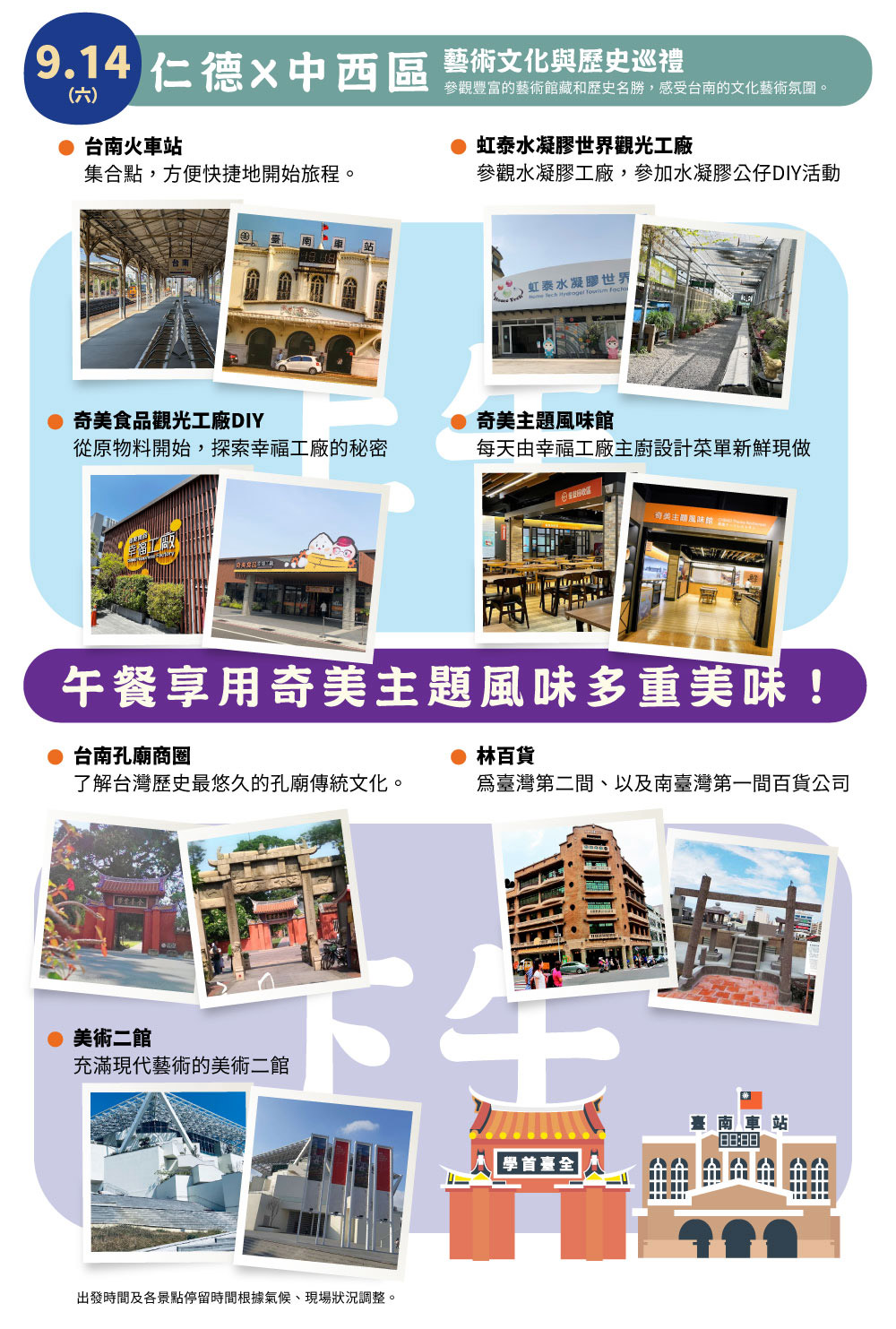臺南400年風華,特別規劃了四條獨具特色的遊程,結合在地商圈與觀光工廠,透過精心設計的小旅行,不僅讓遊客深入體驗文化古都的魅力,更能全方位感受臺南各地商圈的獨特風情與豐富的產業文化。讓我們一起走進臺南,探索這座城市的多元魅力,留下難忘的回憶。