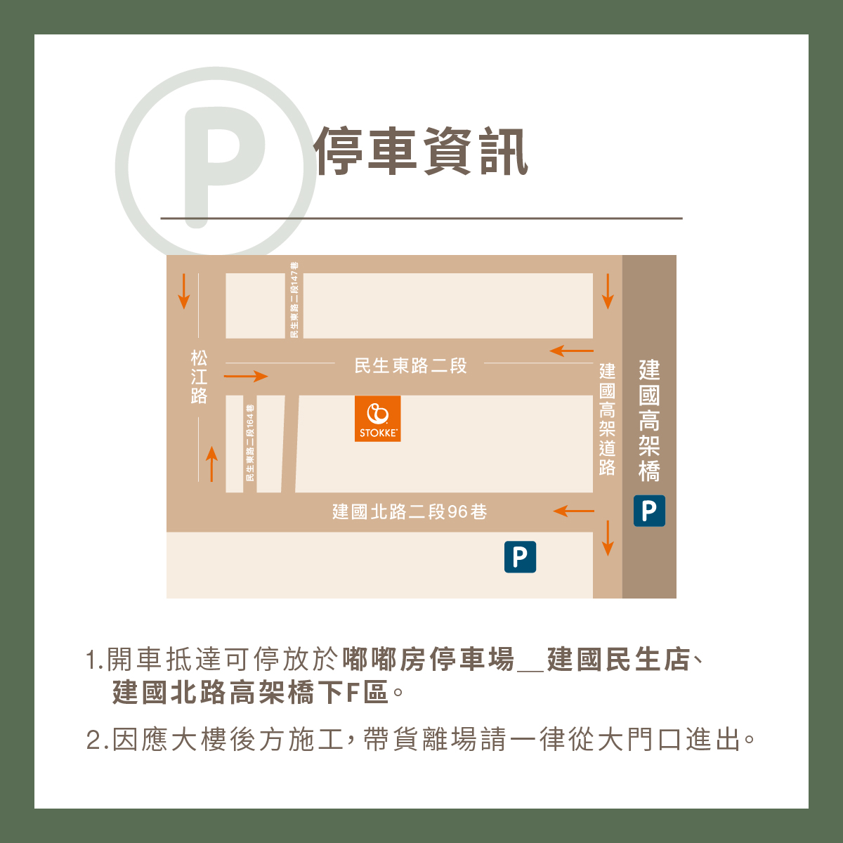 1. 開車抵達可停放於嘟嘟房停車場_建國民生店、建國北路高架橋下F區