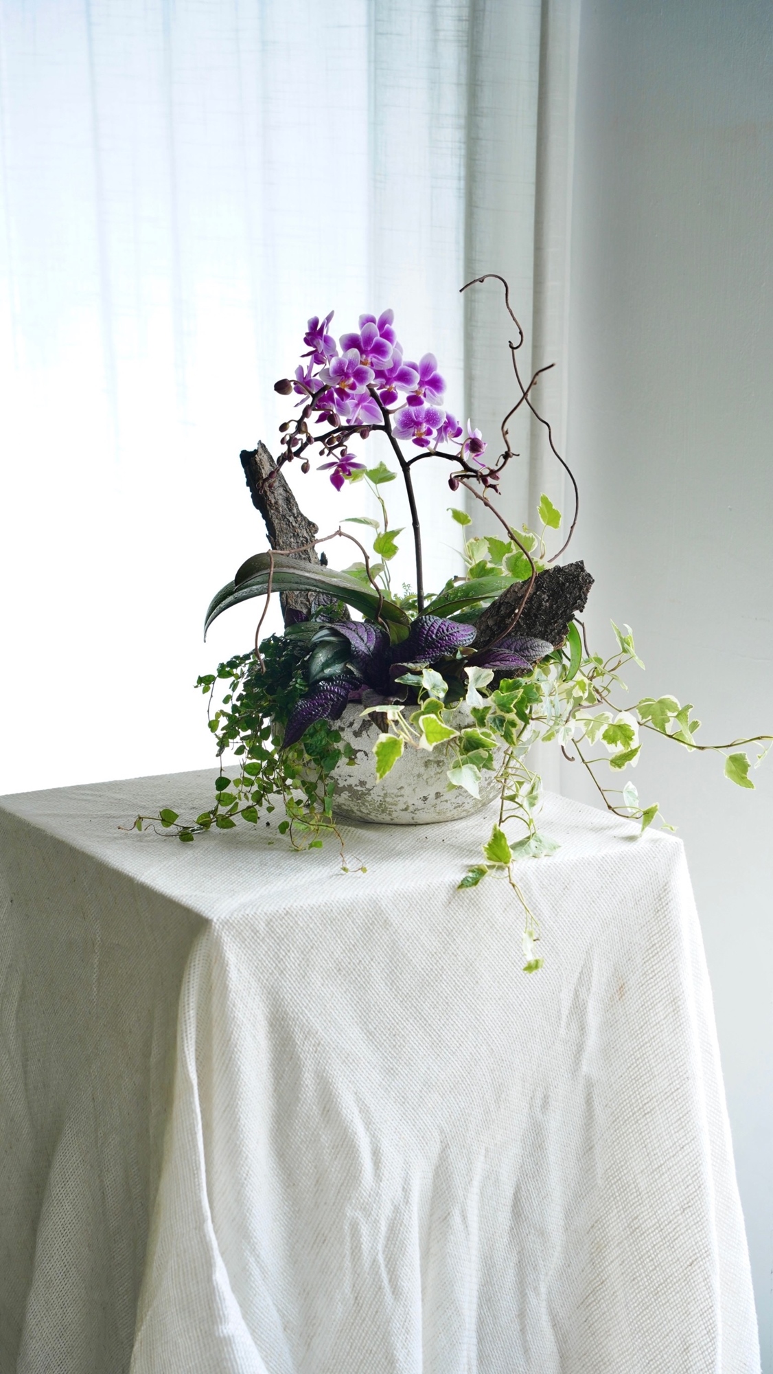 | 10:00-12:00 | 實際體驗 花藝植栽療癒工作坊 此次採用的是臺灣冠軍蘭花,照片僅為萌野參考樣式,依實際教學來做調整 |
