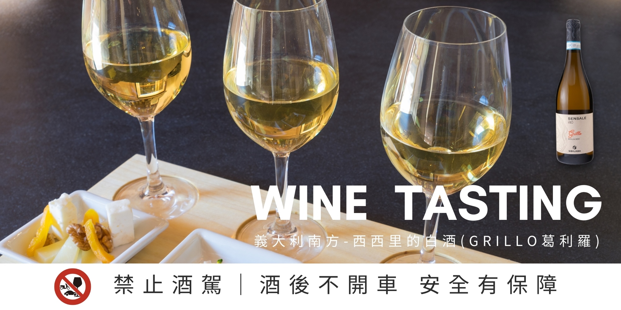 當日品飲來自義大利南方的熱情小島- 西西里Sicilia 的白葡萄酒「葛利羅白酒」。
