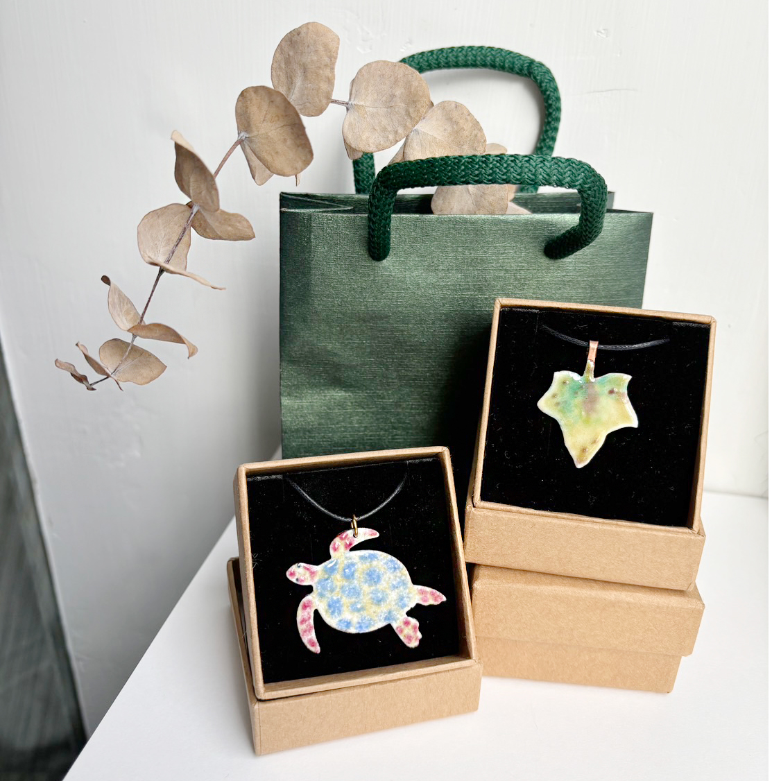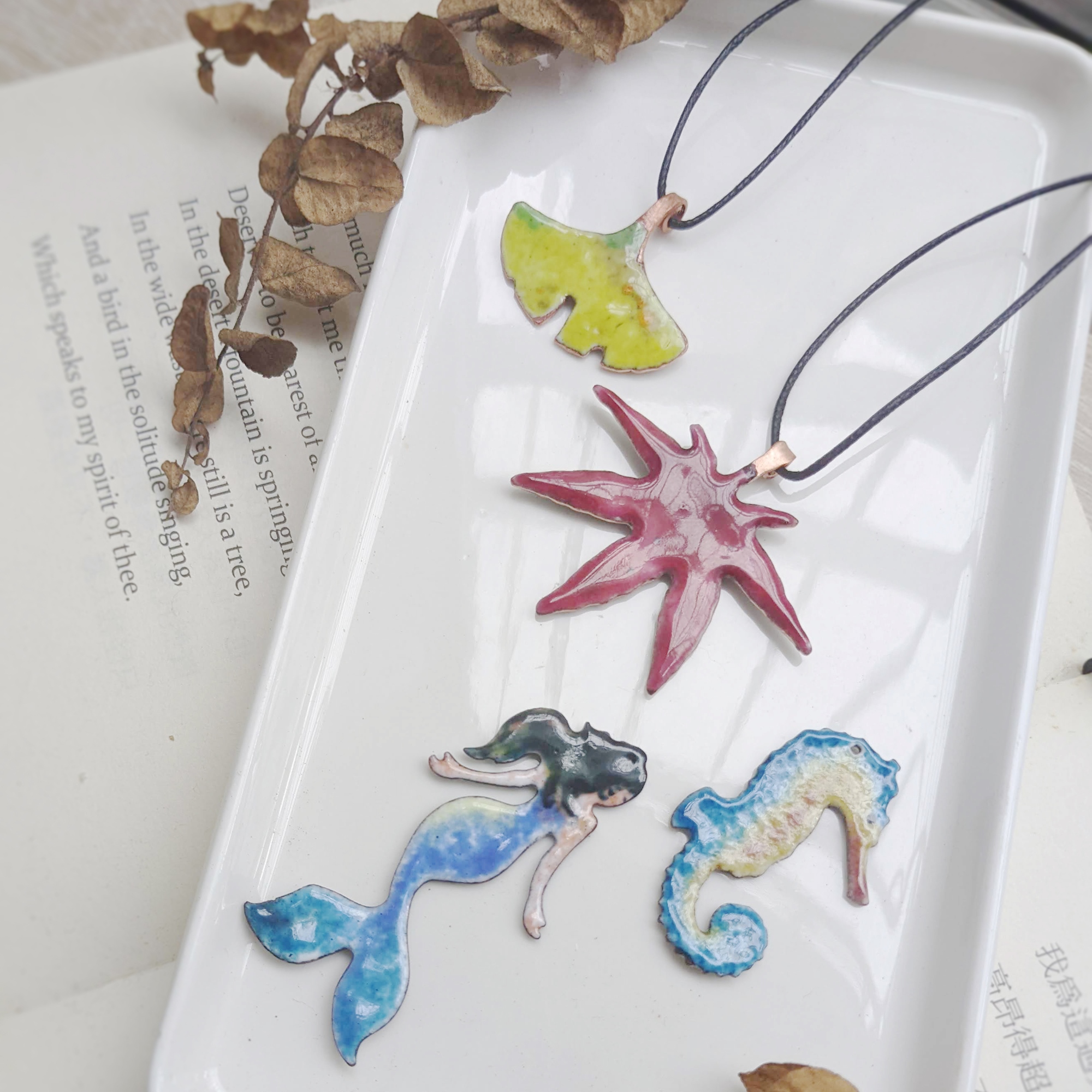 製作好的琺瑯墜子可變成個性項鍊或是掛飾,它是萬般的與眾不同。