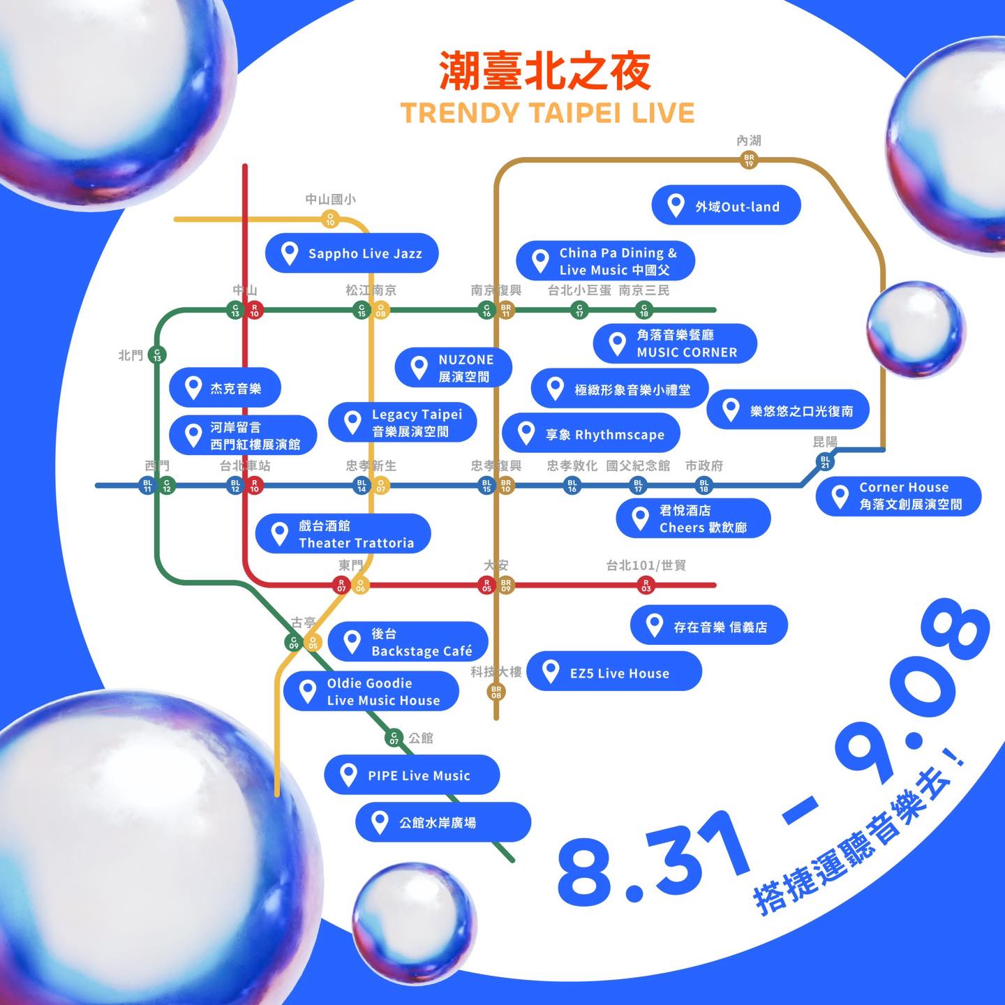 𝟬𝟴.𝟯𝟭 - 𝟬𝟵.𝟬𝟴 搭上捷運探索臺北的音樂秘境吧!