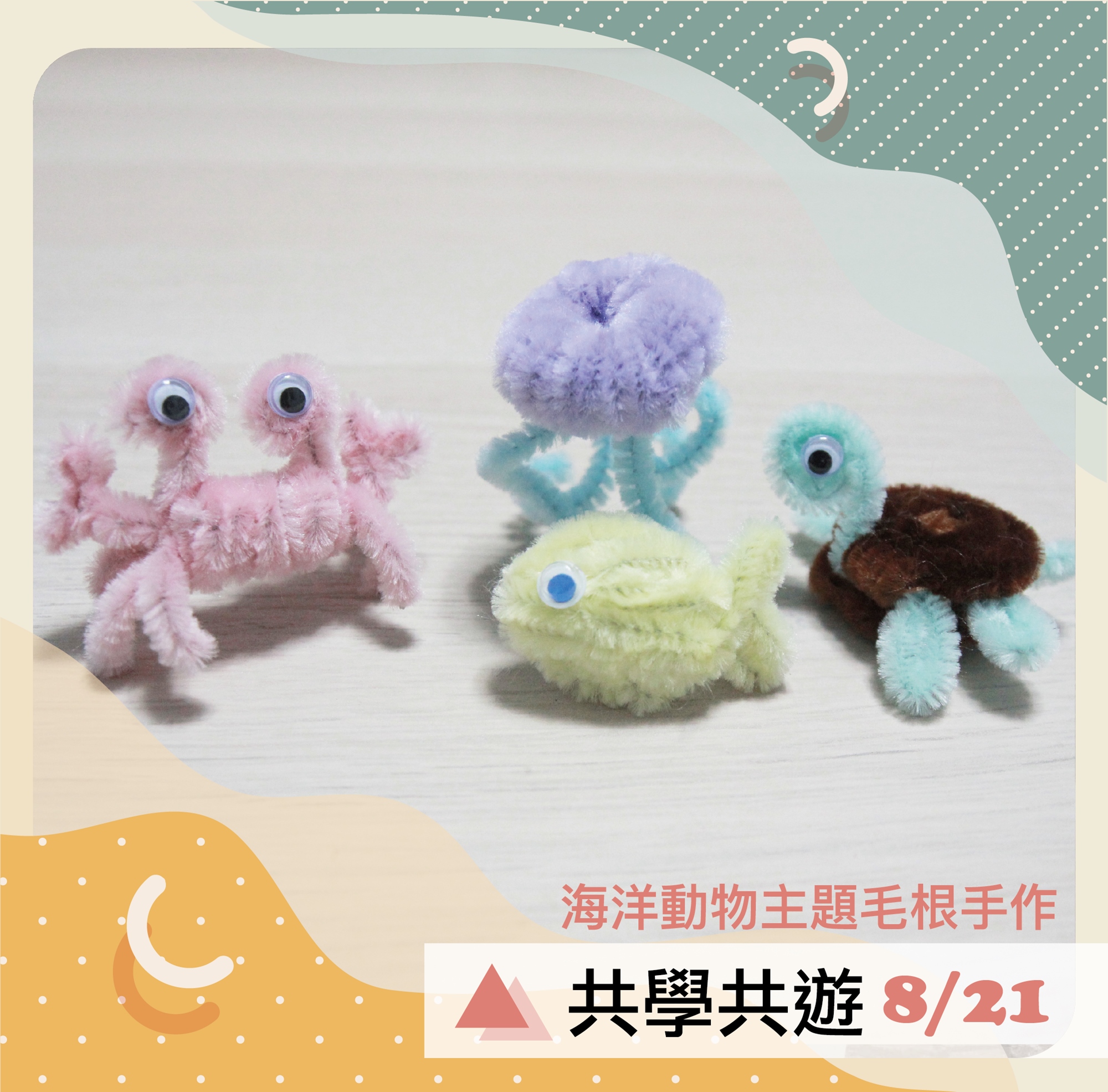 ✦美勞手作|可愛筆套主題毛根手作(8/7)、海洋動物主題毛根手作(8/21)